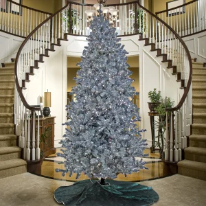 10 ft.Pre-Lit Christmas Matt Silver Tree, Plug-In