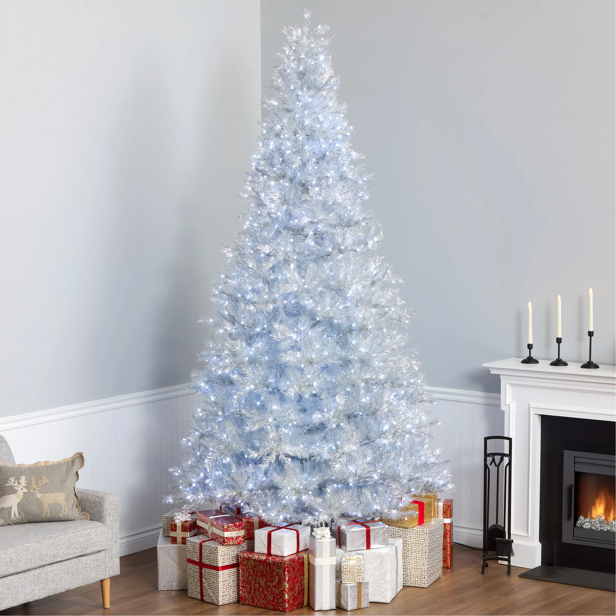 Celebrate the season in grand style with the National Tree Company 10ft Prelit Crystal Pine Artificial Christmas Tree, a luxurious, full-bodied Christmas tree with lights designed to elevate any holiday space. Standing at an impressive 10 feet tall, this artificial tree features 3,098 PVC branch tips. It is pre-strung with 1,250 multicolor LED energy-efficient Infinity Lights® with over 50 different light functions that remain illuminated even if one bulb goes out. Infinity Lights® are low voltage LED lights that utilize an ultra-small “rice-size” bulb. Light counts are then increased two to three times the typical light volume of a comparable product lit with standard size miniature lights. The results produce a lighting effect that is both stunning and elegant. You can easily customize this pre-lit Christmas tree using the 50+ light functions to perfectly match any festive gathering by using its hand-held remote control. The hinged branch construction on this prelit Christmas tree allows for quick assembly. Branches drop down for shaping and fold back up for easy, compact storage. Crafted with fire-resistant, hypoallergenic materials and supported by a sturdy metal stand, this premium tree combines elegance, safety, and convenience for years of seasonal enjoyment. For over 60 years, National Tree Company has been the trusted leader in lifelike holiday décor, helping families bring home the magic of Christmas year after year.