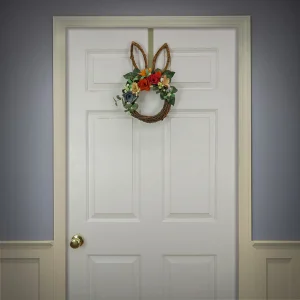 - Includes one artificial Easter wreath that measures 21 inches in diameter and is designed with a sturdy, woven branch base shaped like a bunny’s head with two woven ears attached to the top