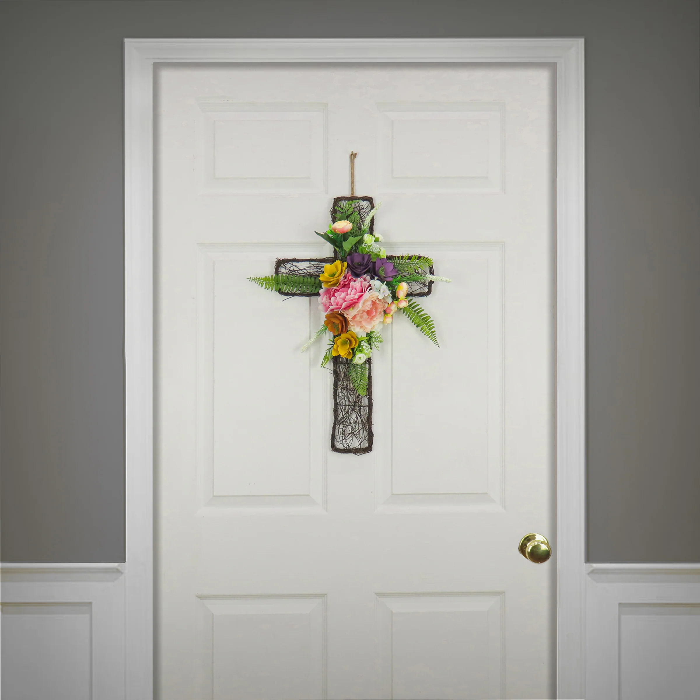 - Hang this floral cross decoration above a door, entryway or window to add a fun flair to any Easter-themed decorative arrangement