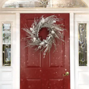 24 in. Pre-Lit Alpine Snow Lump Wreath with Pure White LED Rice Lights