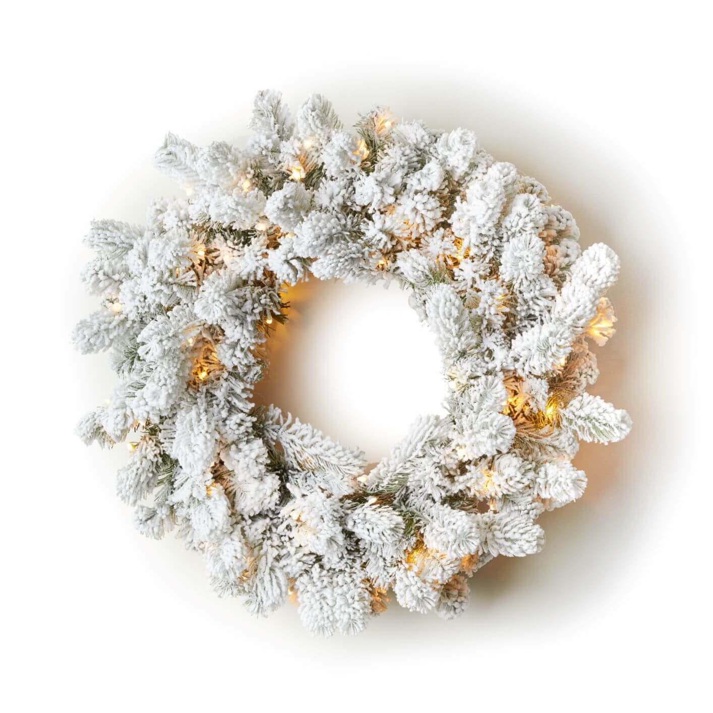 24 King Flock® Wreath with Warm White LED Lights (Battery Operated)