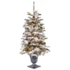 This snow-dusted Frosted Colonial Fir Entrance Tree features Feel Real® branch tip technology, creating a tree with remarkable realism. These crush-resistant branch tips are molded from real tree branches for an authentic living tree appearance. This mixed tip tree in decorative pedestal urn base is pre-lit with 100 warm white LED lights and trimmed with poinsettia flowers and berry clusters. Display in indoor or covered outdoor locations including doorways, deck, porch or patio. Plug in.