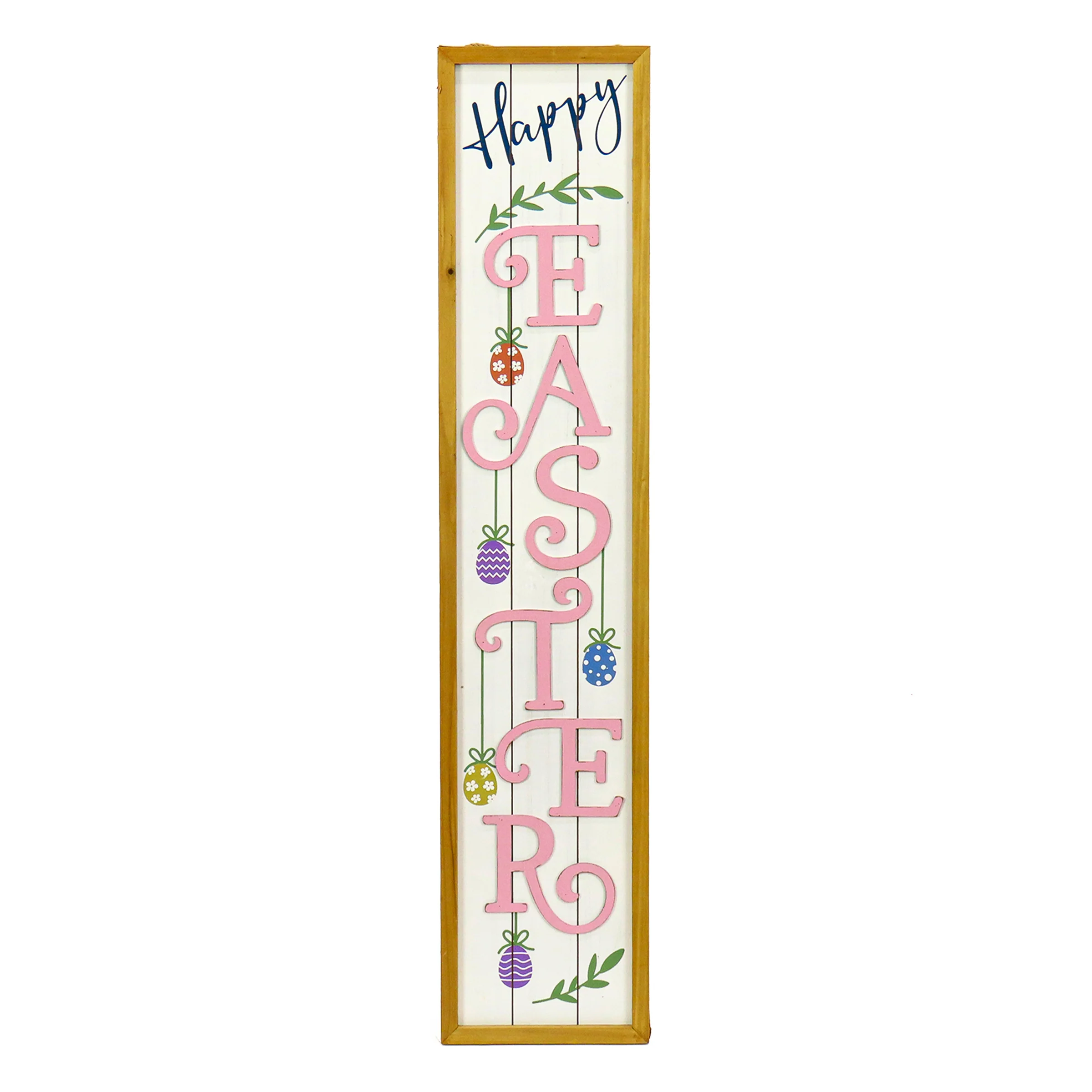 - Includes one decorated Easter sign porch decoration that measures 43 inches in height and 9 inches in width and features a fold out easel attachment on the back to support a standing position as well as an included rope loop can be used for hanging