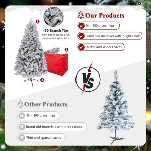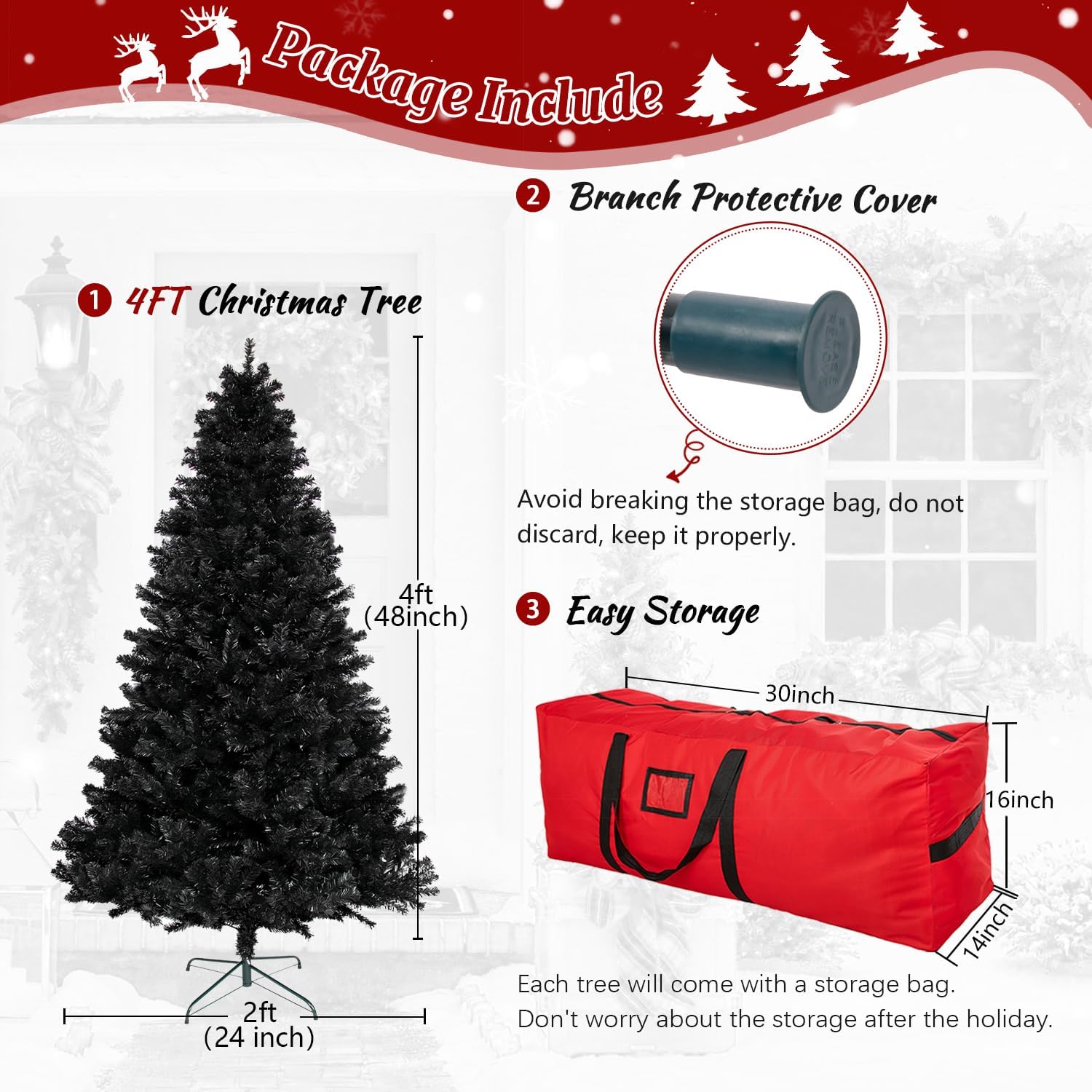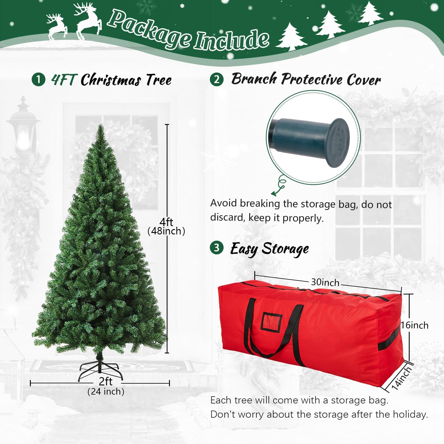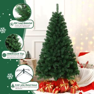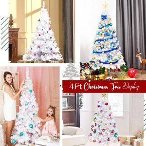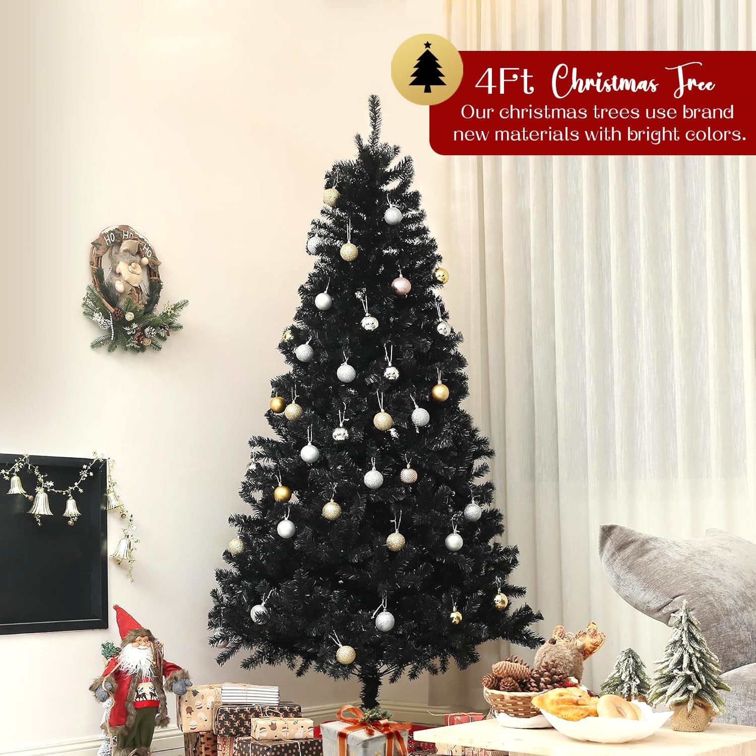 - 【More Branch Tips】4ft fake Christmas tree has 450 branch tips, Made of brand new material with bright and glossy colours, thicker and wider leaves, more branch tips make the slim Christmas tree look more fluffy and more realistic in appearance.Fully open these branches and you will have a perfect Christmas tree to the fullest enjoy your Christmas holiday.