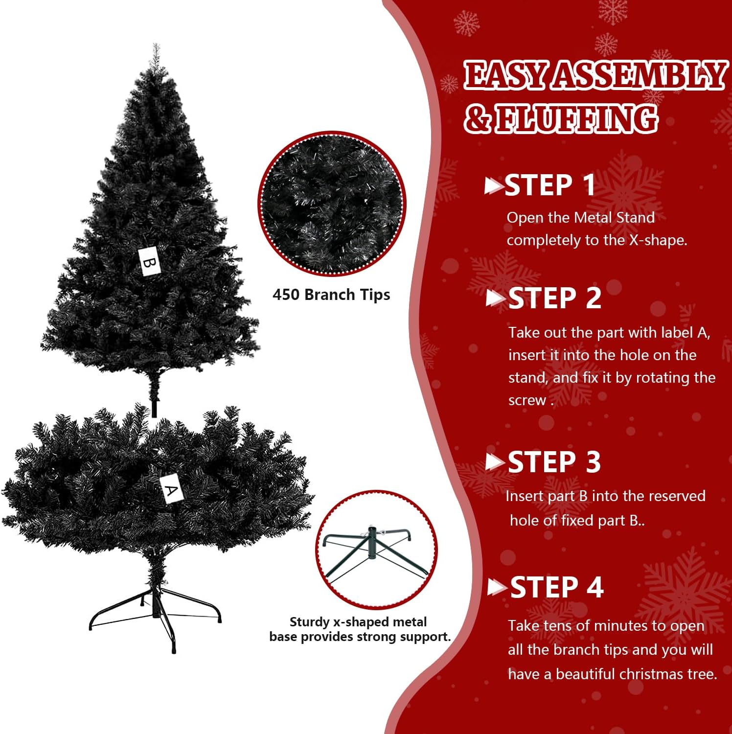 - 【Easy to Assemble】The Christmas tree is hung with a hang tag in capital letters to guide you in assembling each section of the tree in the correct order.We have included instruction to make your installation easier and faster, please refer to the instruction manual for details of assembly and unfolding of branches, and other notes.