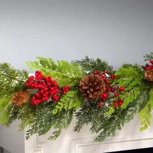 Welcome in the holiday season with the Christmas Joy garland. Measuring 5 feet long, this garland is crafted with green branches and decorated with red berries. Hang on an entryway or mantle. For indoor use only.