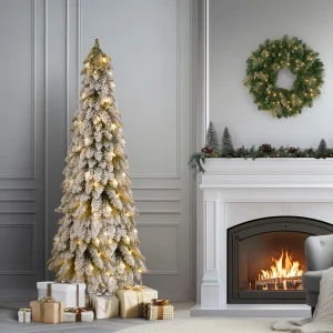 5 ft. Pre-Lit Snowy Downswept Forest Slim Tree with Clear Lights, Plug-In