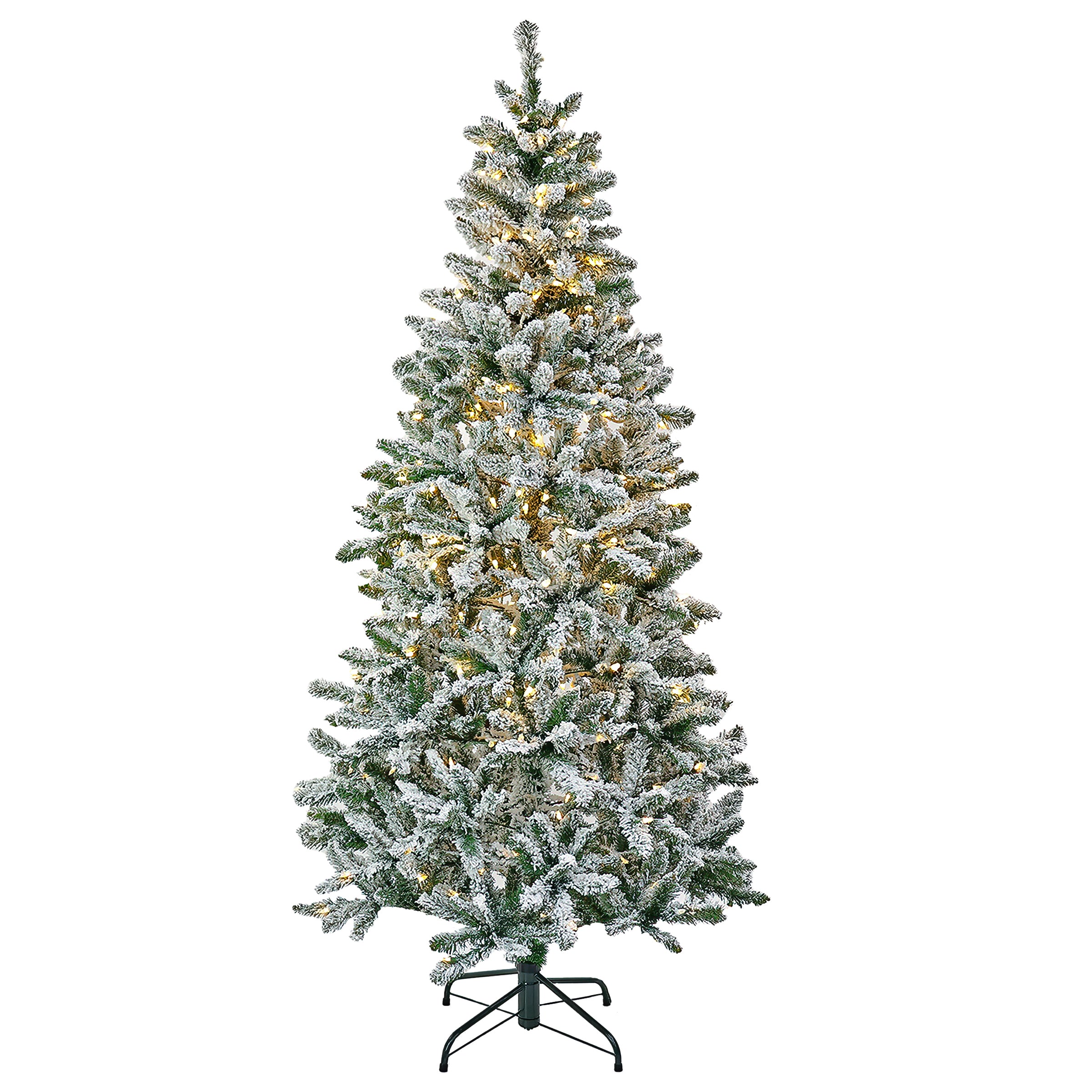 The Snowy Chatham Slim tree offers a thin profile making it a great choice for display in corners or in areas where floor space is limited. It features flocked branches for the look of freshly fallen snow and PowerConnect™ through-the-pole lighting system that eliminates the need for connecting multiple light strings. It is pre-lit with 300 warm white LED lights that are long lasting and energy efficient. Crafted with high quality materials and hinged branches for easy set up and includes a sturdy metal folding stand. For indoor display only. Plug in.