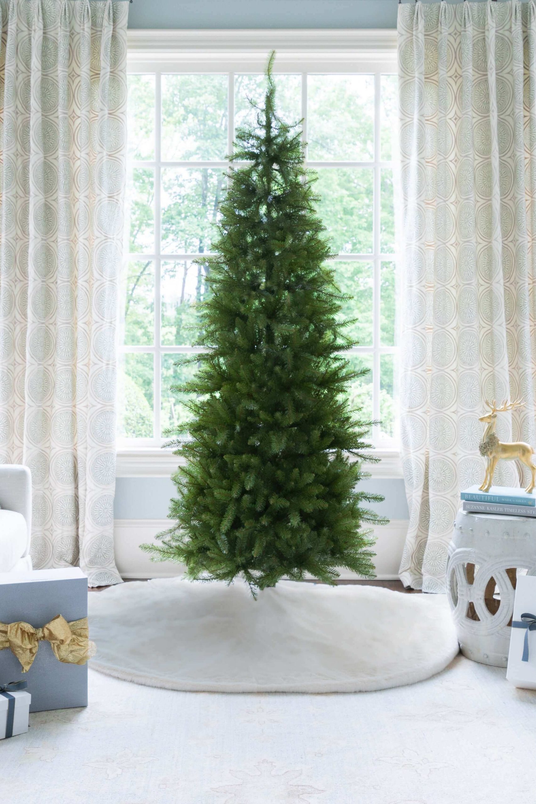 6.5′ Yorkshire Fir Slim Artificial Christmas Tree with 400 Warm White LED Lights