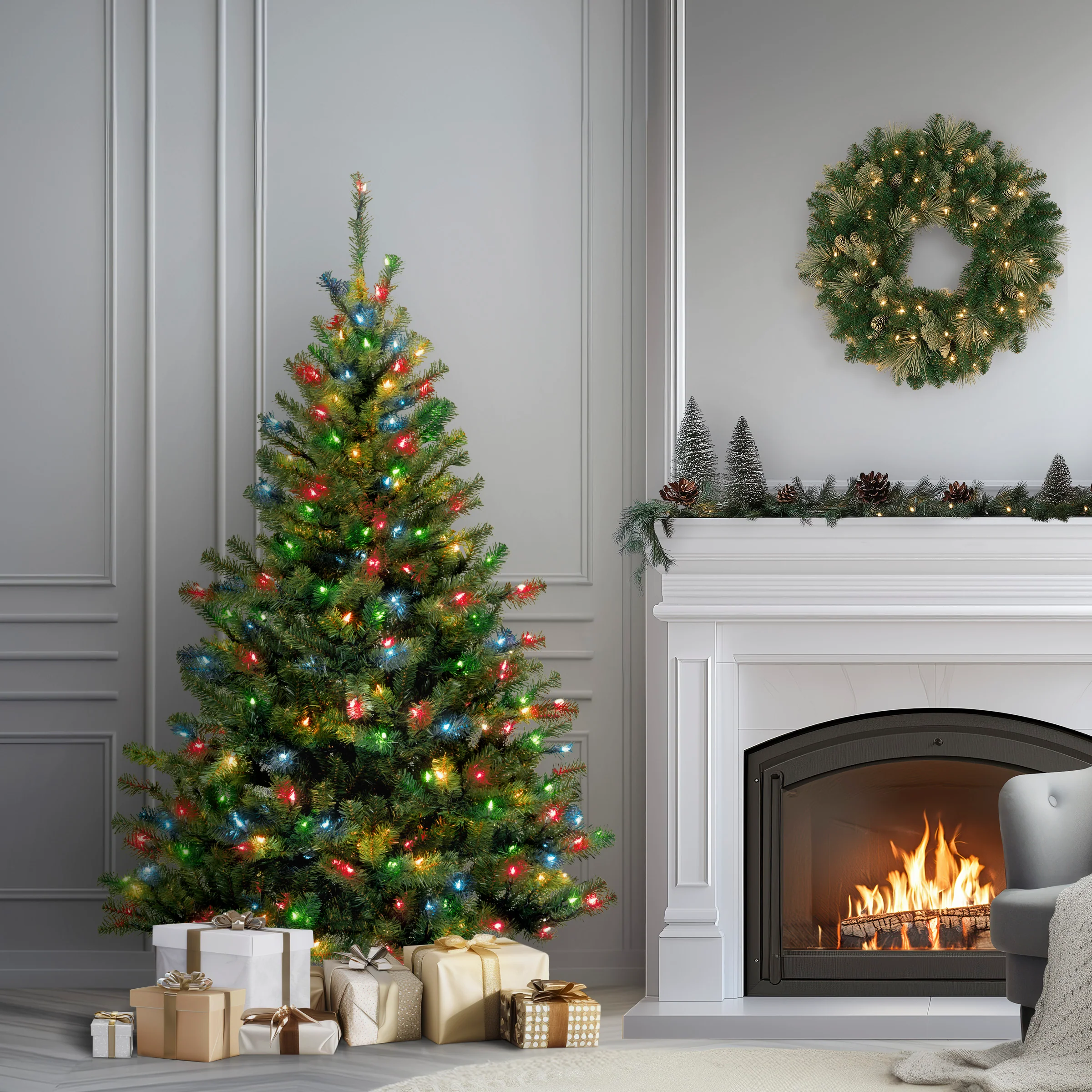 - Pre-lit with 400 UL listed multicolor lights. Plug in.
