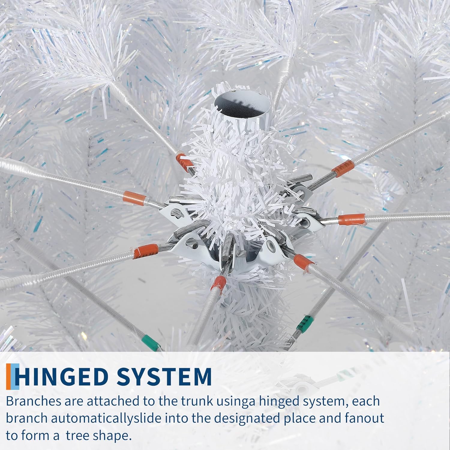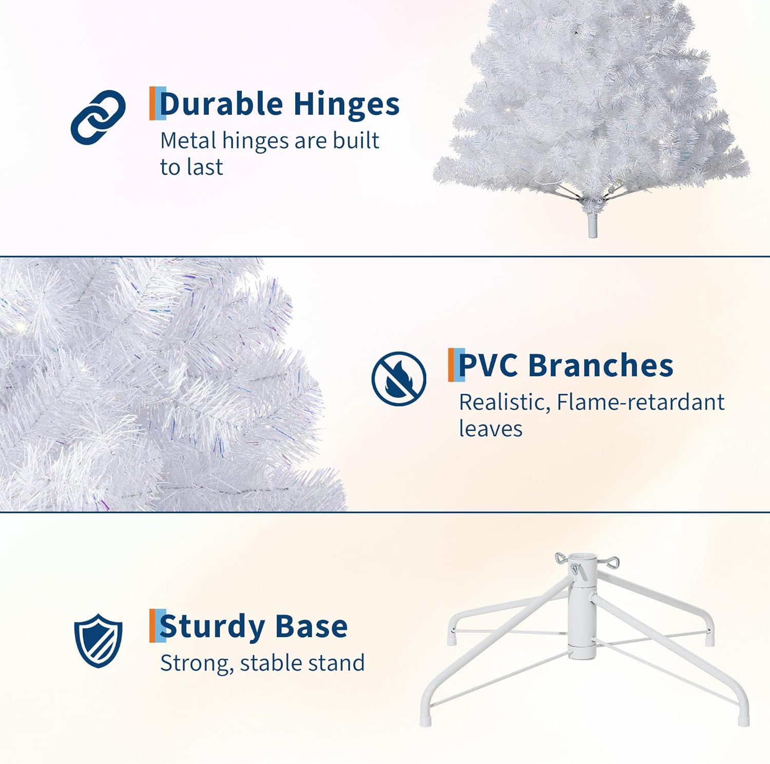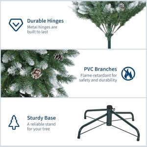 - PVC Tips & Metal Stand: The branches and tips of this Christmas tree are made of durable PVC, while the stand is made of sturdy metal and provides stability, and padded feet prevent sliding on floors.