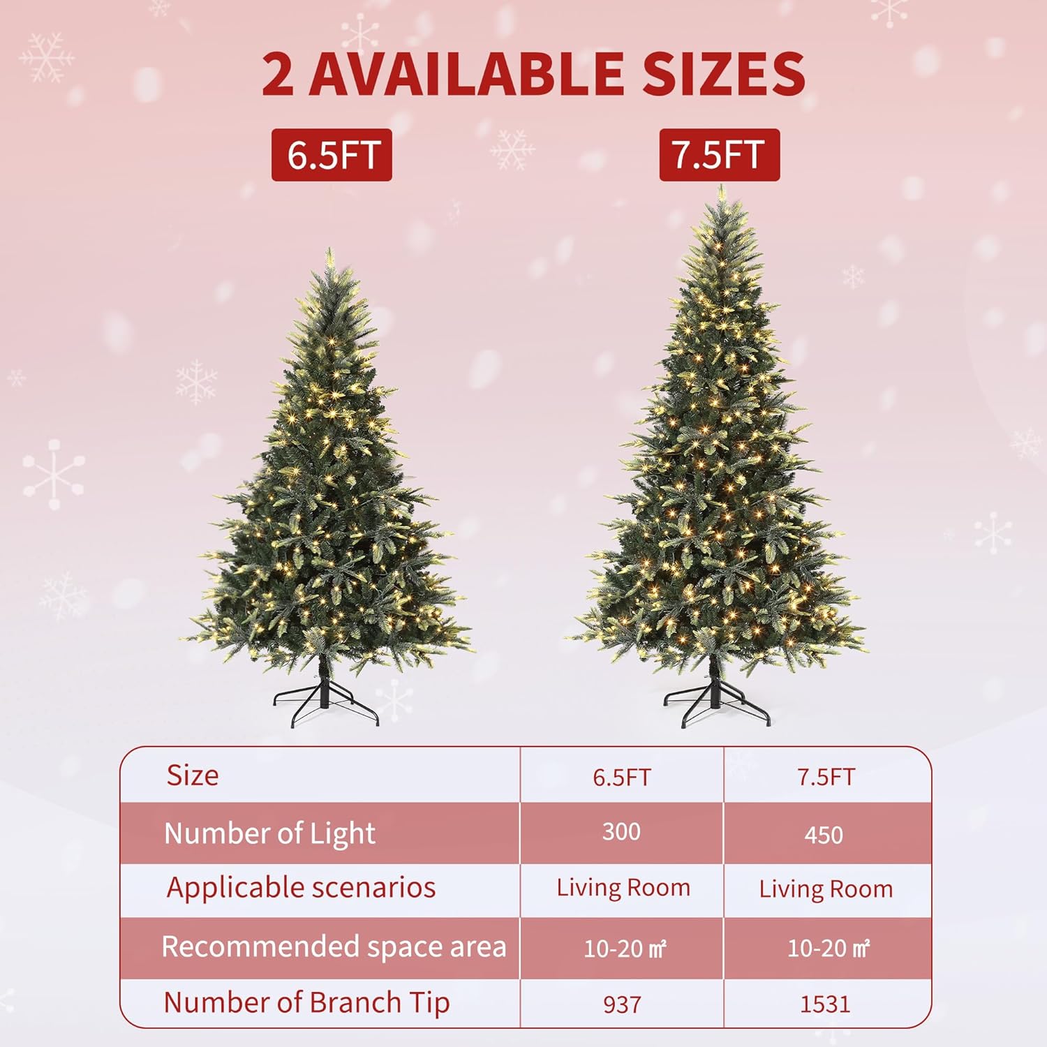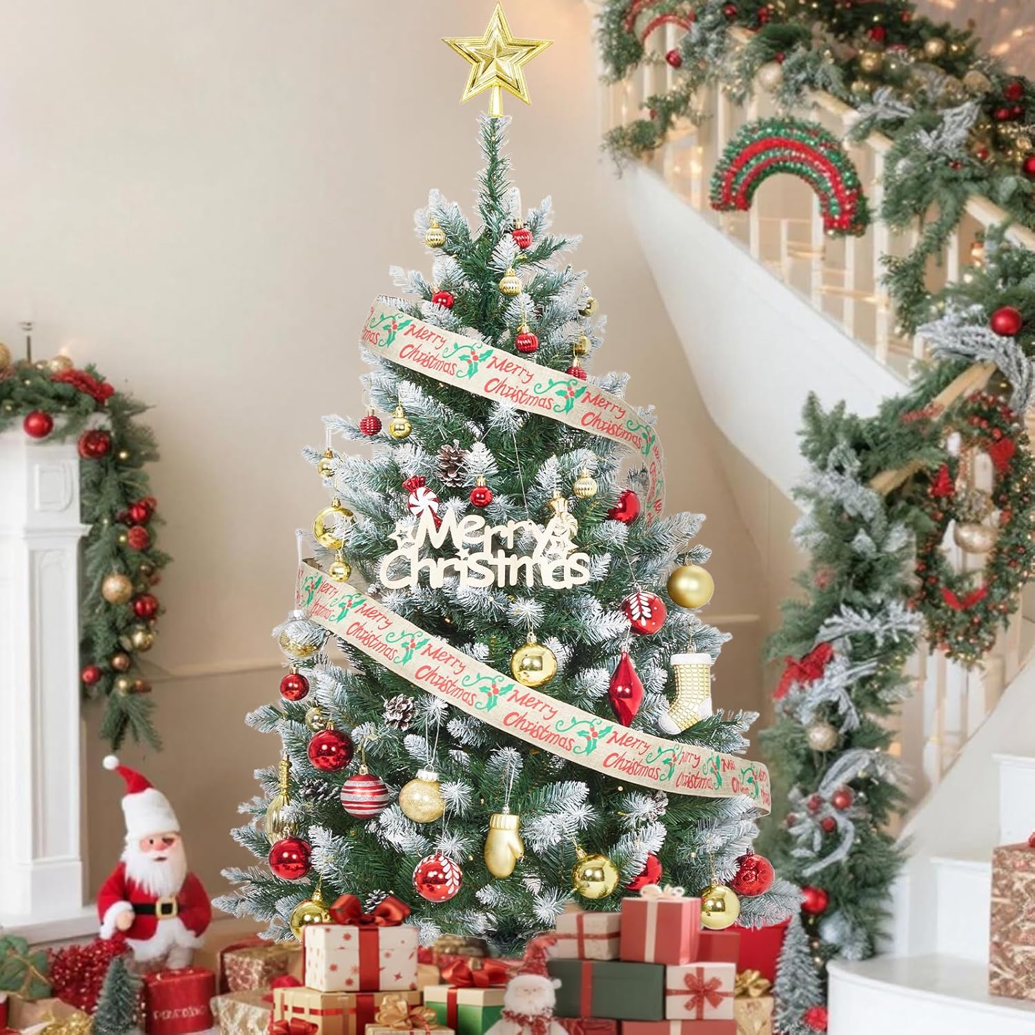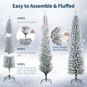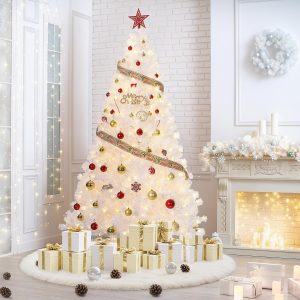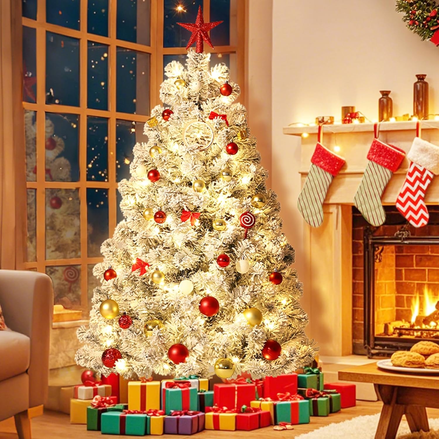 - Snowy Look: The Christmas tree features lush green branches covered in white flocking, creating a stunning snowy white and green appearance that adds a magical winter atmosphere to your holiday decor.