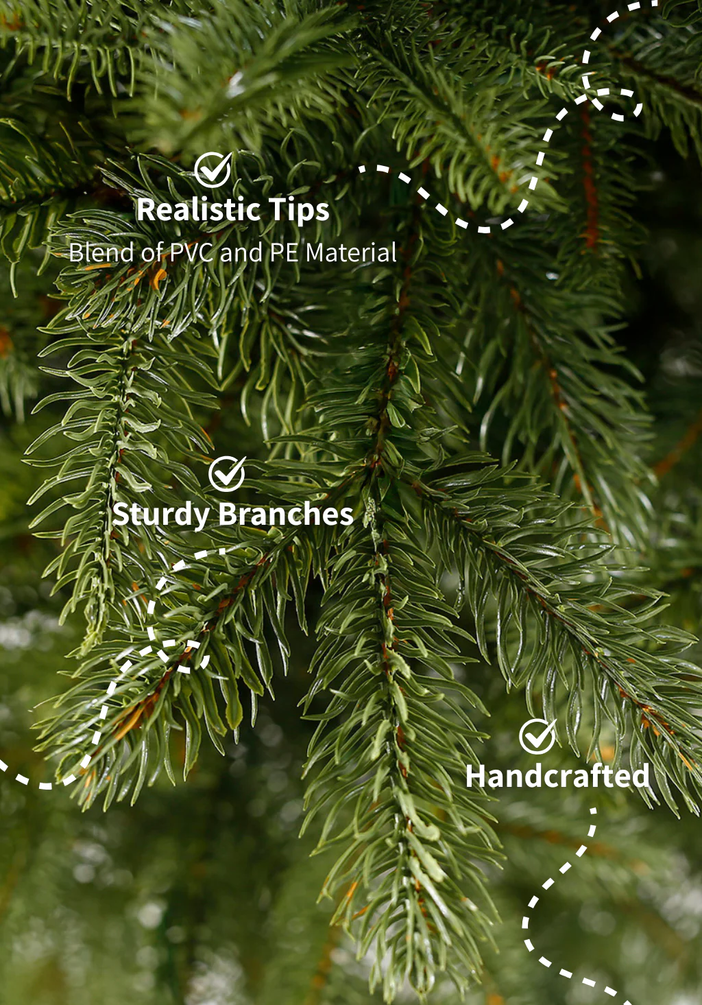 Inspired by the majestic White Spruce, the Cypress Spruce showcases lush, true-to-nature greenery and vibrant, rich color. Carefully designed for realism and ease, it brings the serene charm of a winter forest into your home for a truly festive season.