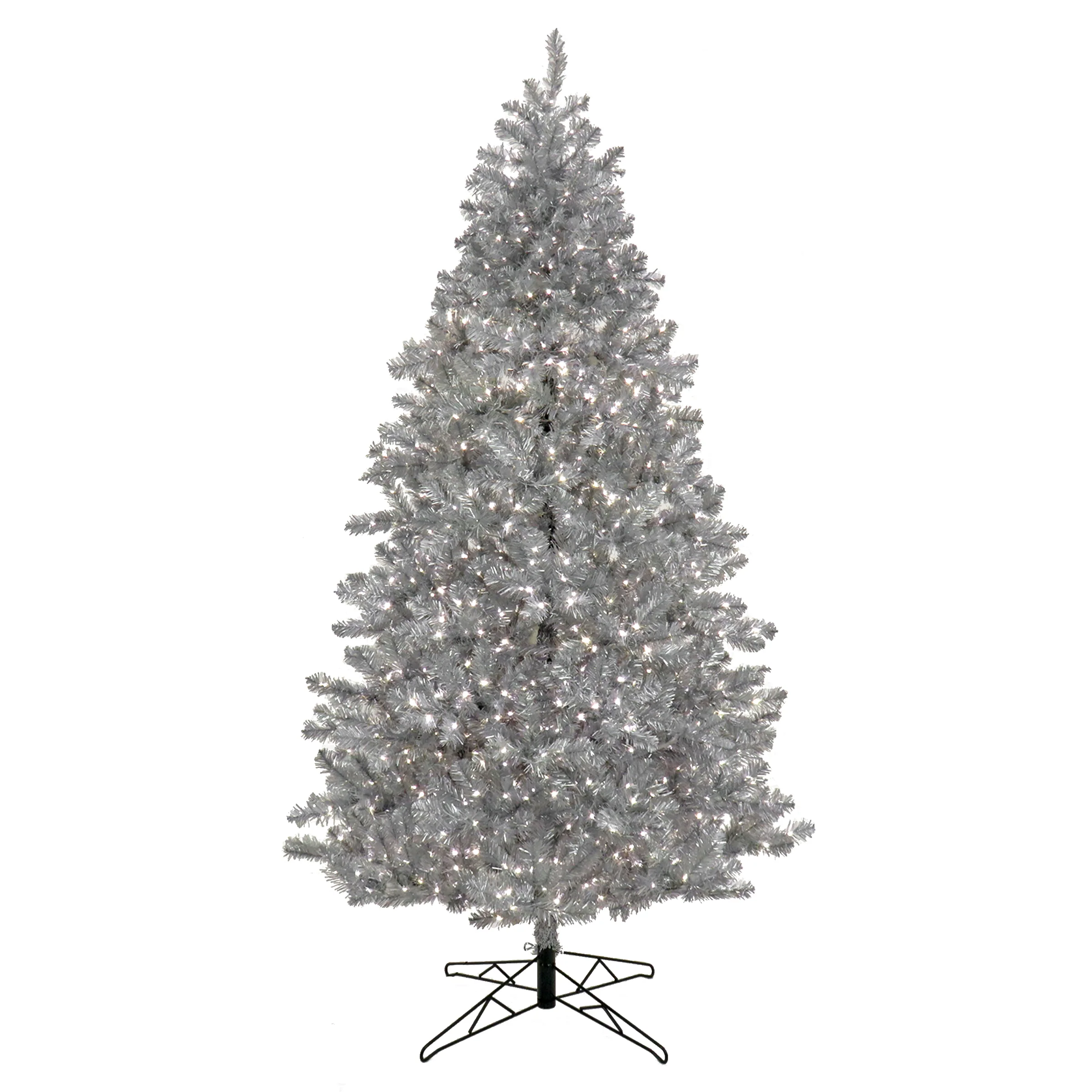 Bring a whole new dimension to your holiday decorating with this evergreen tree featuring sparkling metallic branch tips. This thick, full-bodied tree is strung with 1250 cool white LED Infinity Lights® which are micro-LED bulbs built right into the light strings. This design allows for an increased volume of lights and cleaner overall look that provides a distinctly elegant result. Three-section, hinged branch construction makes assembly quick and easy. Sturdy folding metal tree stand is and lights ON/OFF footswitch included. Plug in.