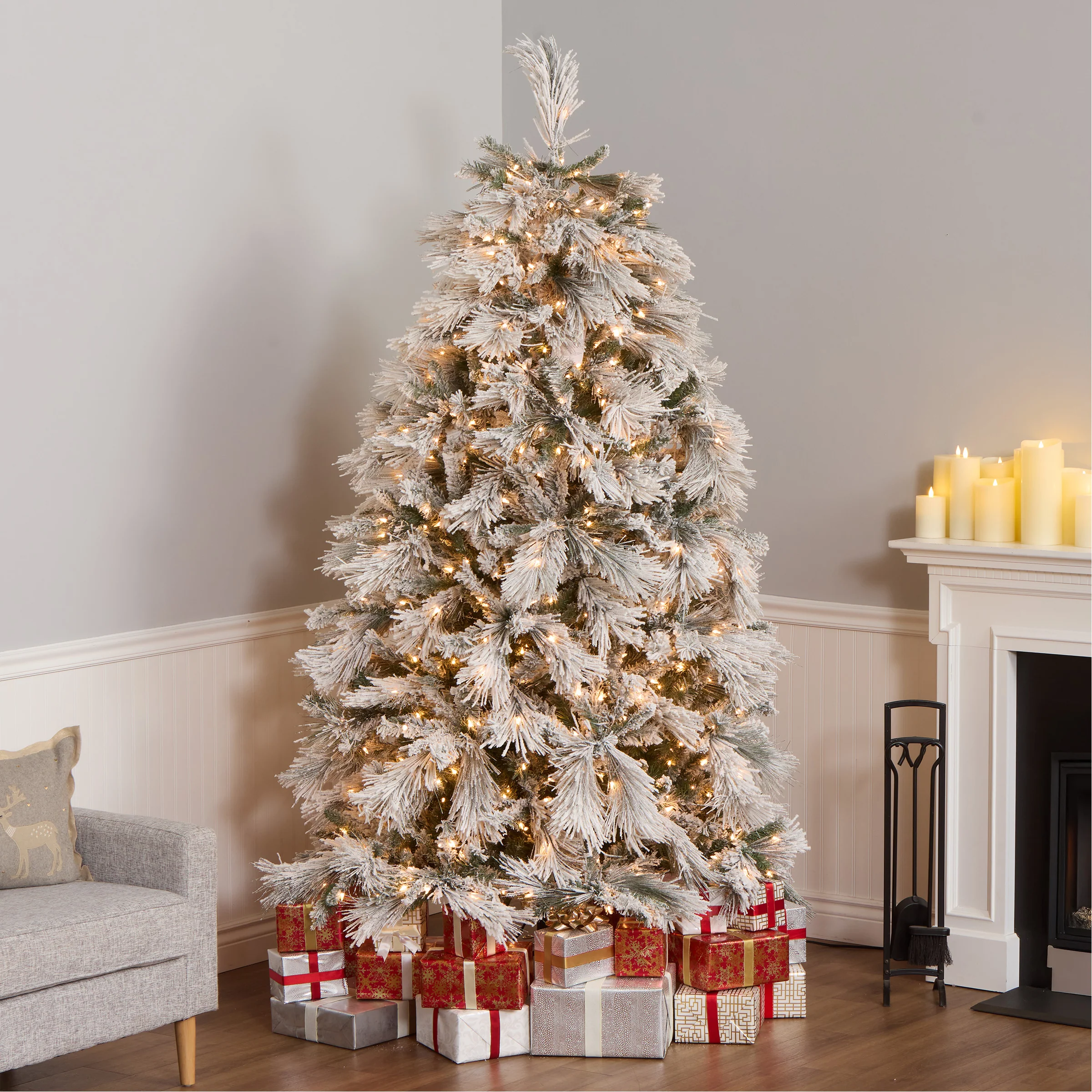 7.5 ft. Pre-Lit Flocked Bavarian Pine Tree with Clear Lights