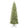 - LIFELIKE PRELIT CHRISTMAS TREE: 7.5ft tall with a narrow 42in diameter and 938 glittery, high-quality, PVC lightly flocked branch tips that have pinecones and is perfect for hanging Christmas décor