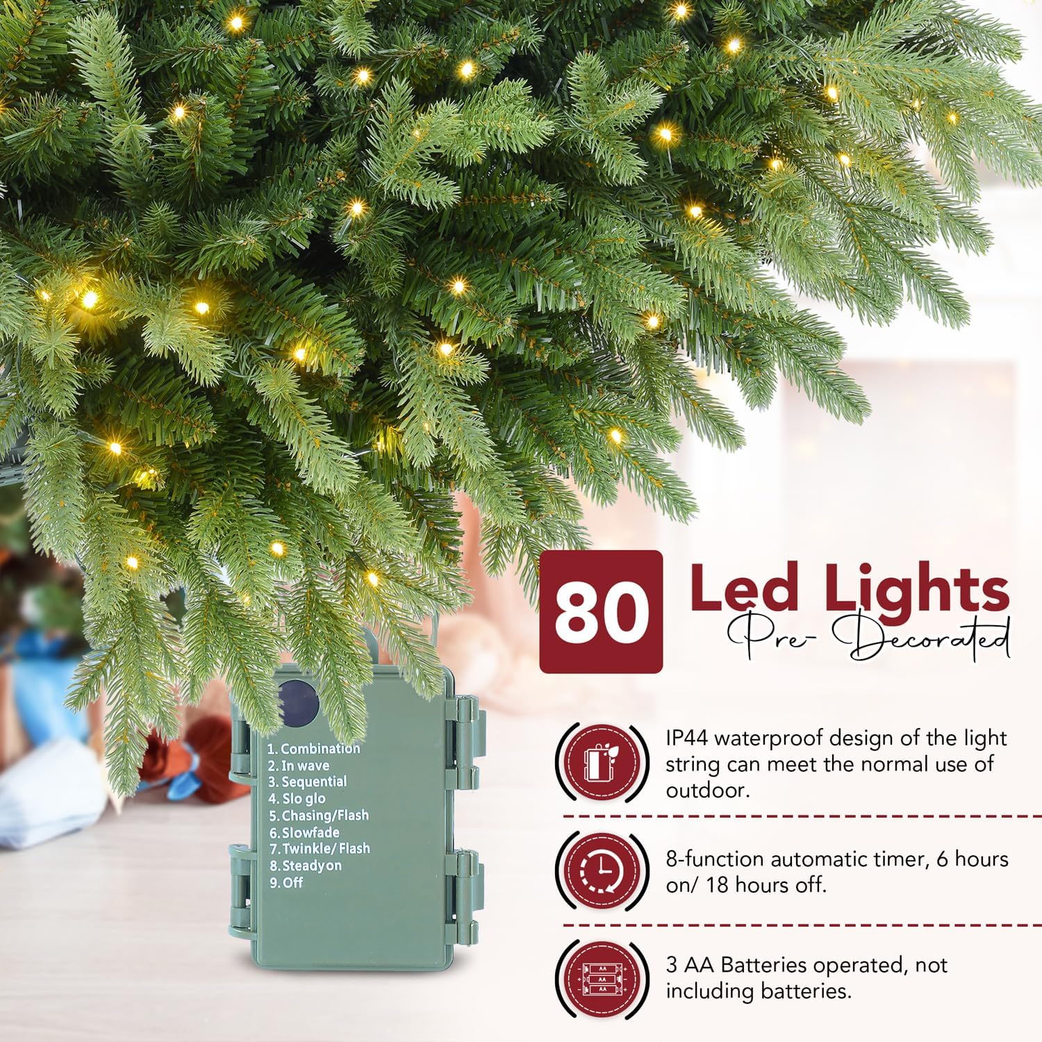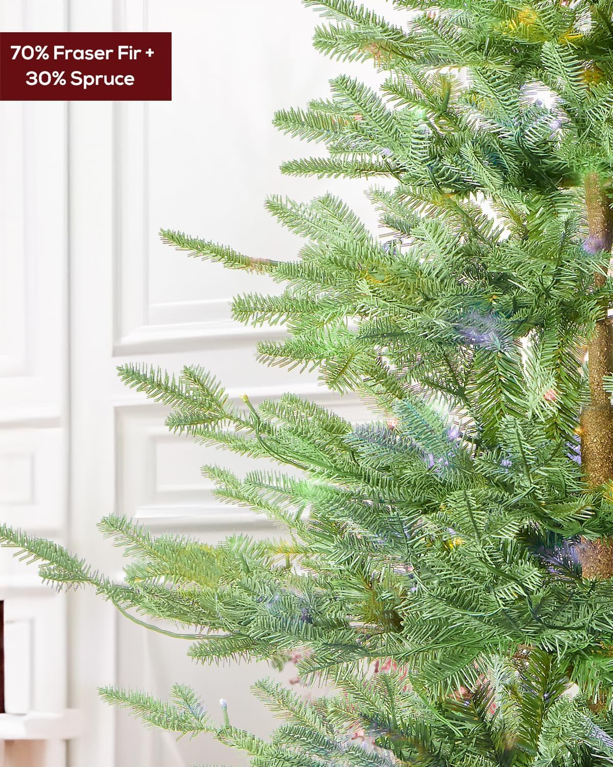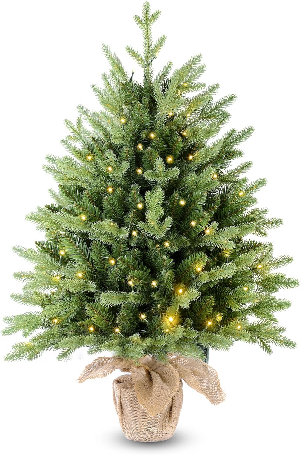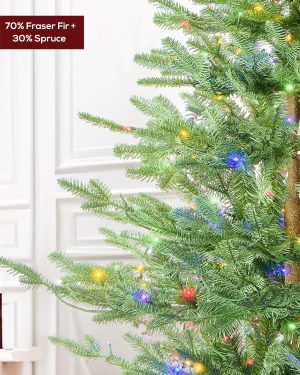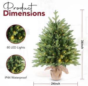 7.5 FT Prelit Christmas Tree, Artificial Spruce Christmas Tree with 350 Warm White LED Lights, 1100 PVC Branch Tips, Easy Assembly/Metal Stand/Hinged Branches Decoration