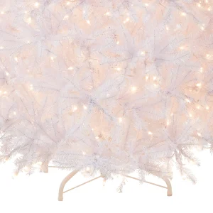 The Dunhill Fir® White tree is an attractive alternative to the traditional green holiday centerpiece. Your colorful holiday trimmings will really stand out on this bright white background. It is pre-strung with 700 clear lights that remain lit even if a bulb burns out. This tree features hinged branch construction for ease of assembly. Sturdy metal tree stand is included. Plug in.