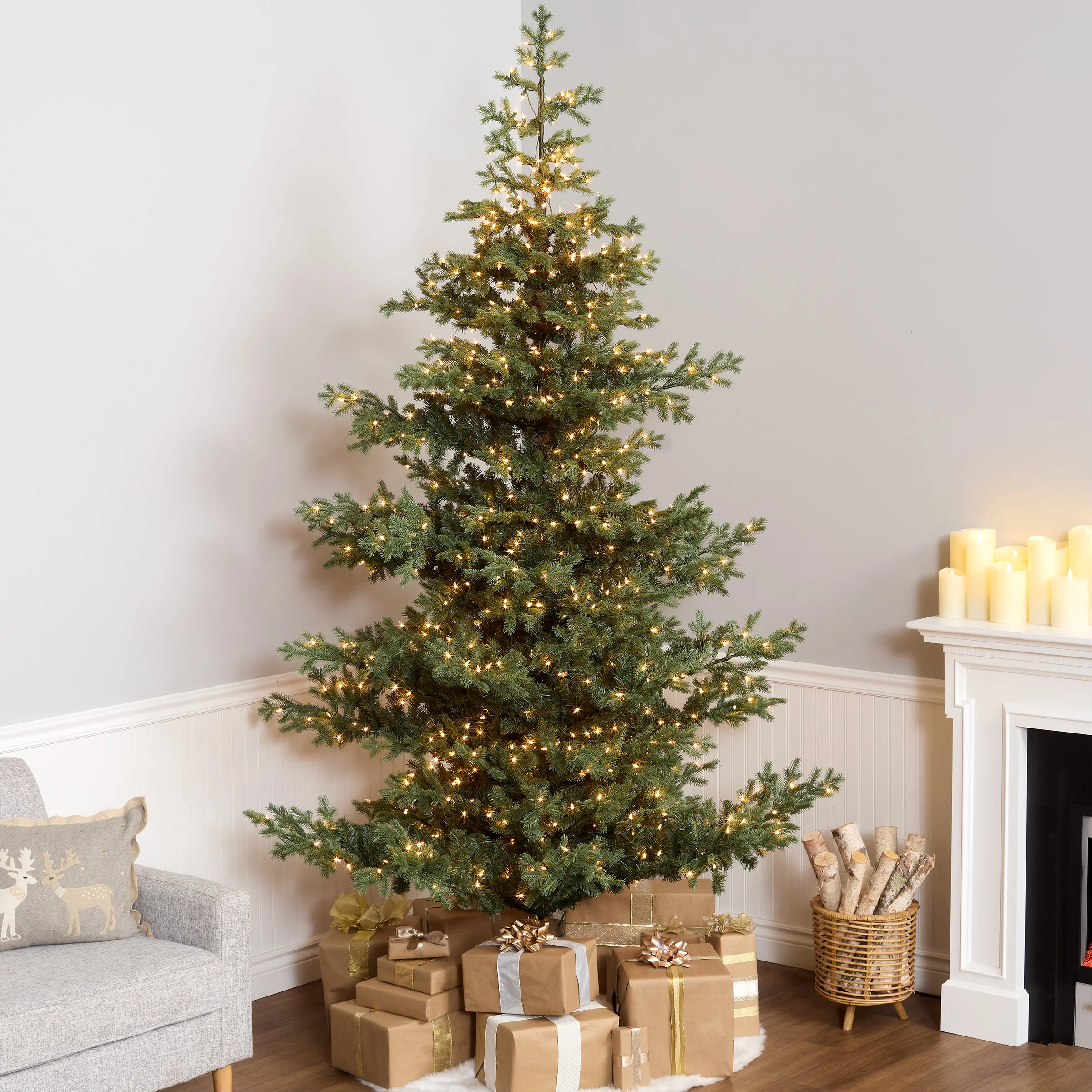 - CHRISTMAS TREE WITH LIGHTS: This Christmas decoration arrives pre-strung with 1,100 clear incandescent lights that remain illuminated even if one bulb goes out, creating a cozy holiday glow