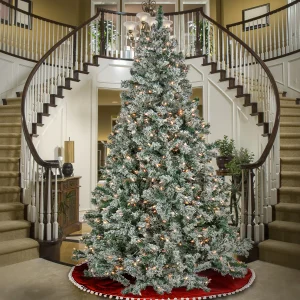 The Snowy Crestview tree is a full body tree featuring mixed branch tips that are dusted with snow. It is pre-lit with 900 clear lights that that remain lit even if a bulb burns out and features a generous number of branch tips for holding holiday trimmings. Crafted with high quality materials and hinged branches for easy set up and includes a sturdy metal folding stand. For indoor display only. Plug in.