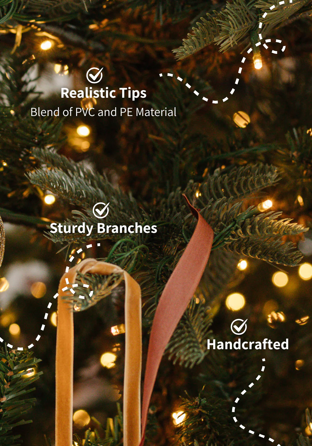 Explore the unique beauty of the King Noble, a true masterpiece that perfectly replicates the sparse silhouette of the classic Noble Fir.Each branch is expertly crafted to ensure a lifelike look that offers the perfect backdrop for your cherished ornaments. Ideal as a centerpiece or secondary tree, it shines wherever it’s displayed.