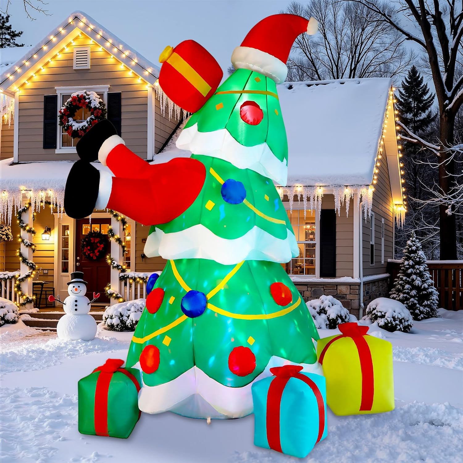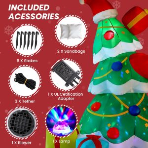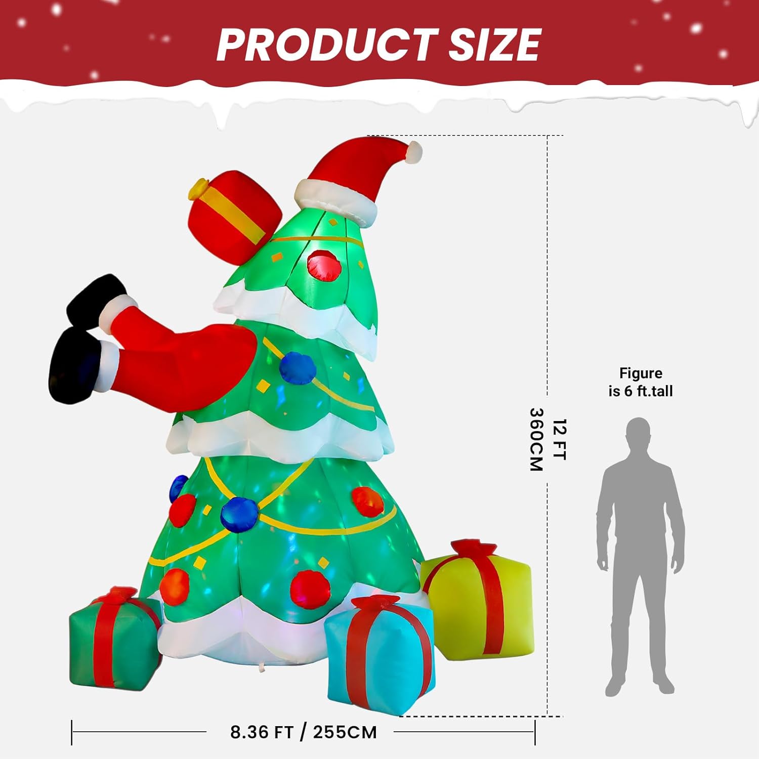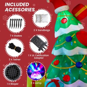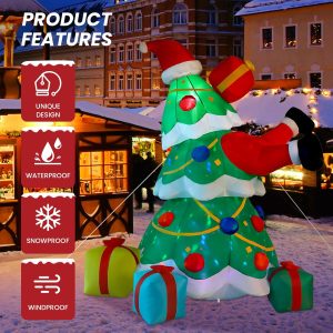 Alupssuc 7FT Inflatable Christmas Tree Decorations Outdoor with Built-in LEDs Lights, Blow Up Santa Claus Tree with 4 Gift Boxes Outside/Indoor Xmas for Yard, Garden, Lawn, Party, Holiday Decor
