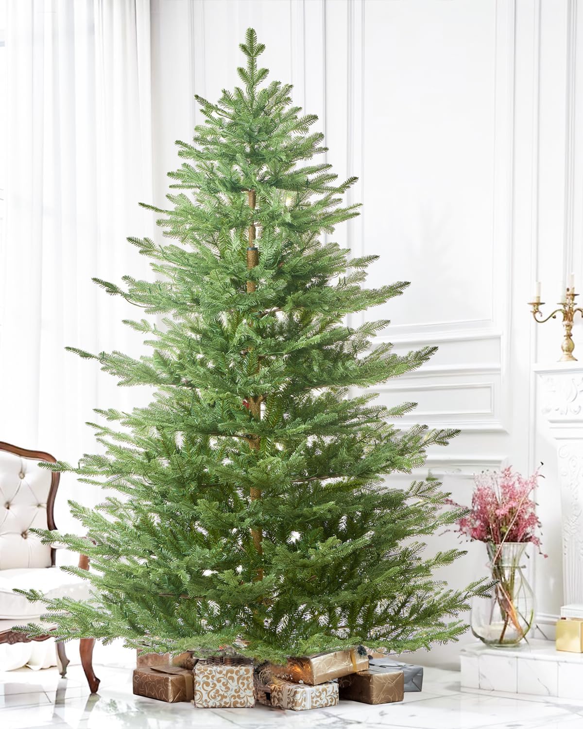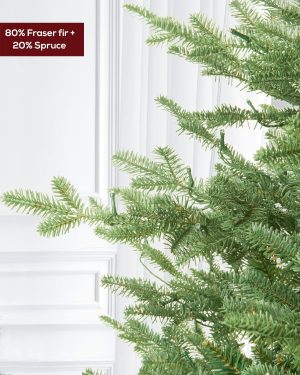 Amaoasis Pre-lit Christmas Tree 7.5ft Aspen Fir, 750 Warm White & Multi-Color LED Lights, Hinged Holiday Xmas Artificial Tree Festive Decor, Green