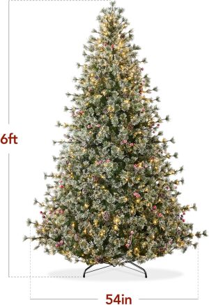 - PREMIUM DESIGN: Durable, partially flocked branches come trimmed with pine cones and artificial berries to recreate a natural look that adds an outdoor aesthetic to your decorative display