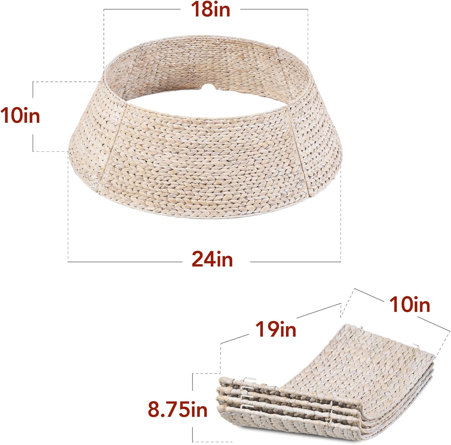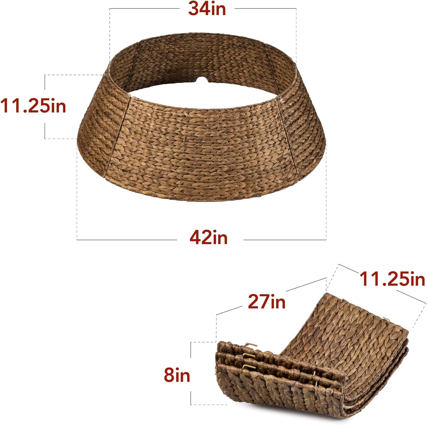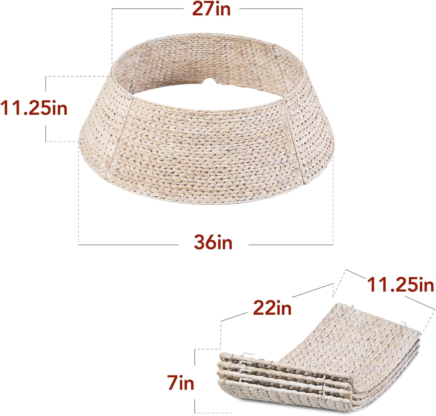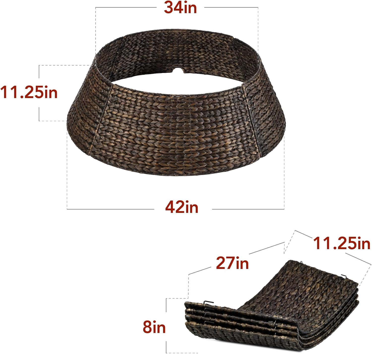 - NATURAL MATERIAL: Durable and flexible hyacinth woven in a beautiful braided pattern adds a refined yet rustic touch to your festive setup; OVERALL DIMENSIONS: 42.5″(Dia) x 11.25″(H)