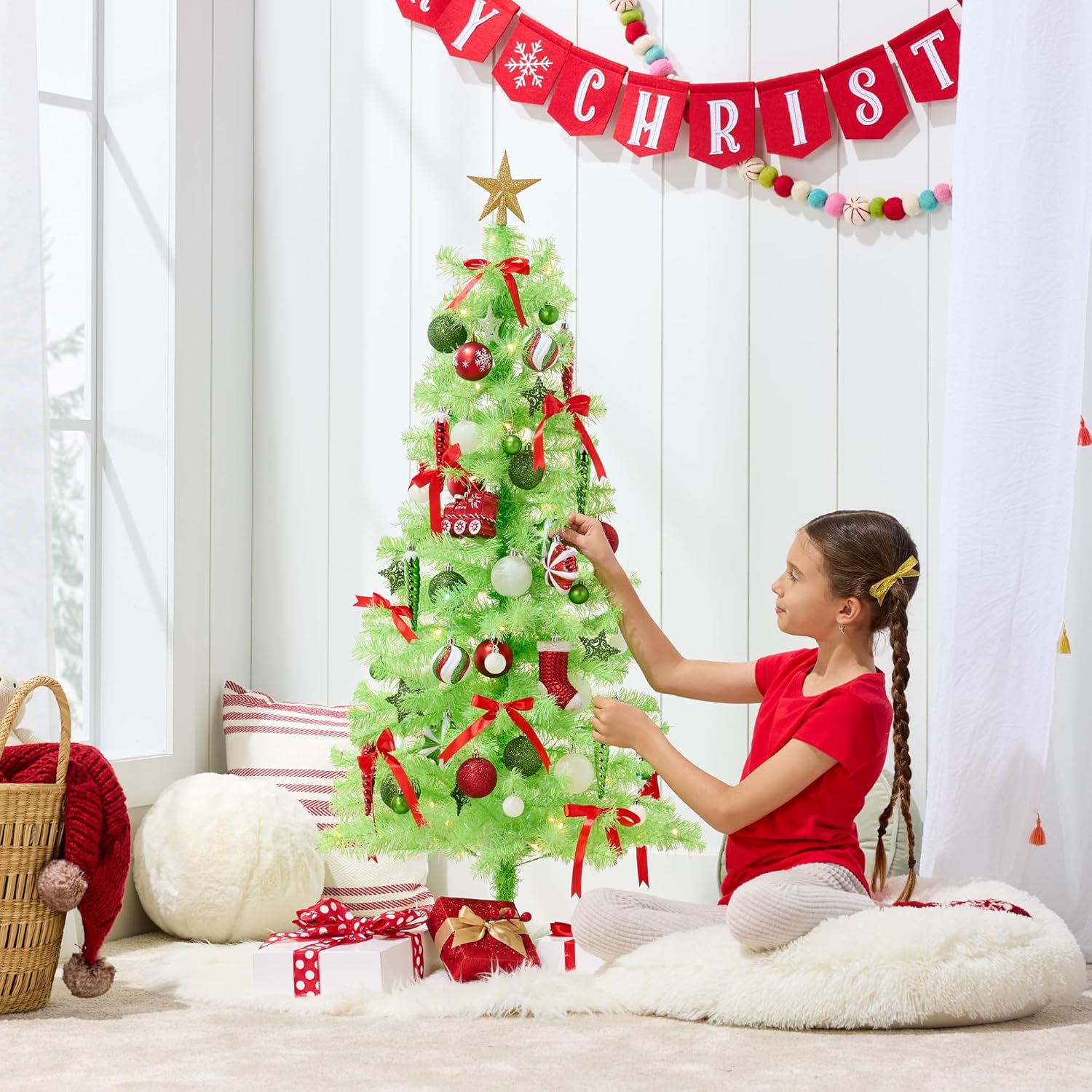 Best Choice Products 4ft Pre-lit Christmas Tree, Artificial Mini Tree Perfect for Kids, Apartments, Bedroom with Twinkling LED Lights - Green Spruce