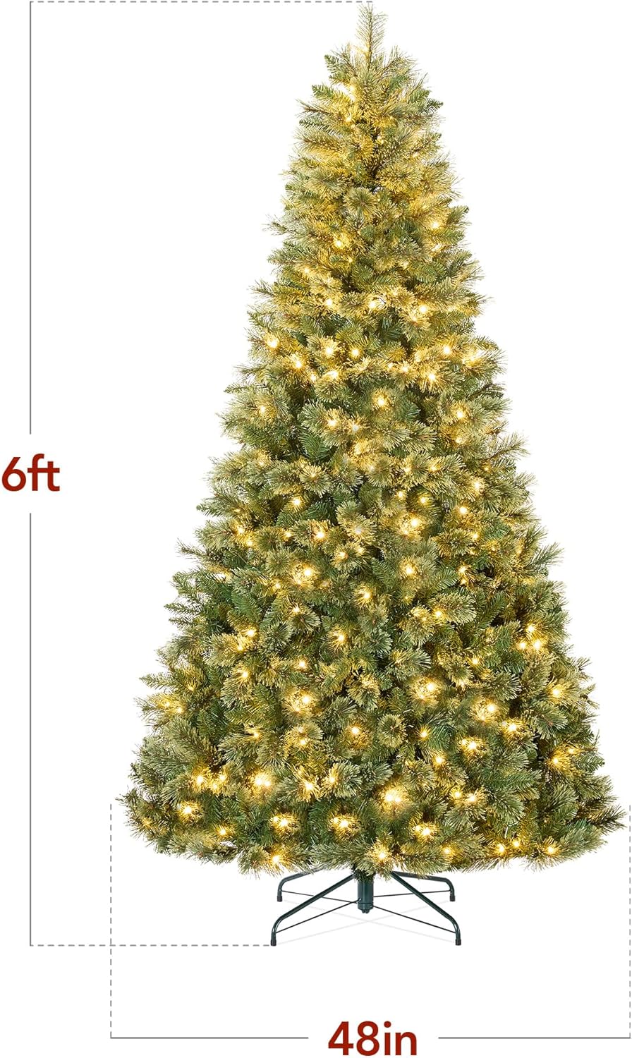 Best Choice Products 6ft Pre-Lit Cashmere Christmas Tree, Premium Artificial Holiday Decor w/Cordless Connection, 2-in-1 LED Lights, Folding Stand