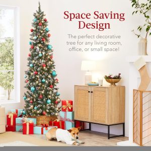 - PRE-LIT PENCIL TREE: Each tree features a slender profile and a set of warm, incandescent lights to brighten your holidays; Light Counts (4.5ft/6ft/7.5ft/9ft/12ft): 150/250/350/450/700