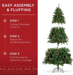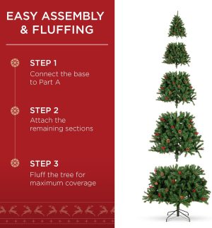 - HIGH-QUALITY DESIGN: Crafted with durable metal hinges and flame-retardant PVC branches that stand tall with the help of a sturdy metal base, so you can enjoy your tree for holiday seasons to come!