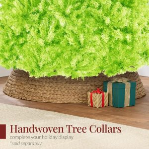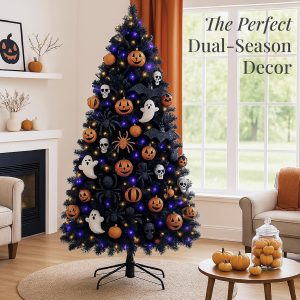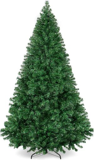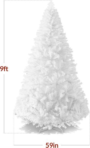 - HIGH-QUALITY MATERIALS: Crafted with durable metal hinges and flame-retardant PVC branches that stand tall with the help of a sturdy metal base, so your tree is ready to look its best for the season ahead!; OVERALL DIMENSIONS: 44″(Dia) x 72″(H) (including stand)