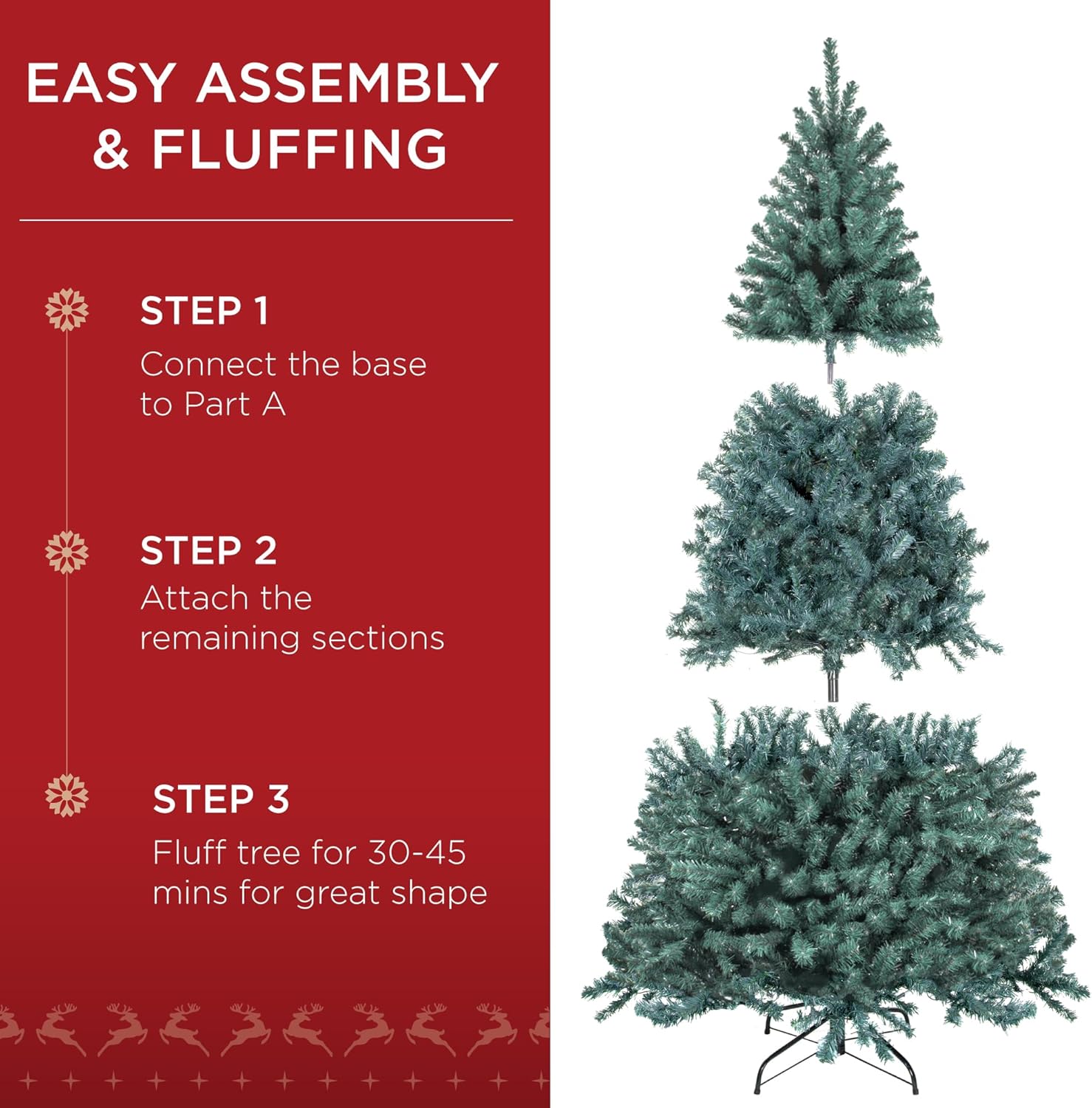 Best Choice Products Artificial Christmas Tree, 6ft Premium Unlit Realistic Spruce Holiday Décor w/Dense Branches, Easy Assembly, Metal Base