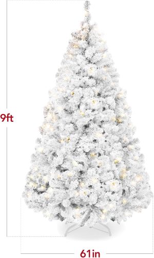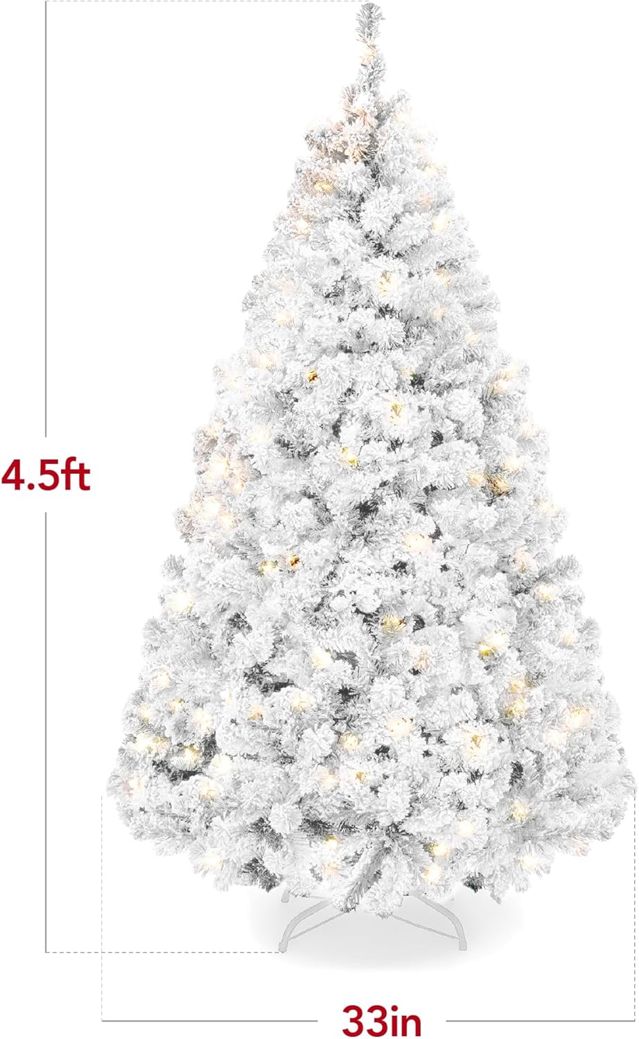 - FULLY LIGHTED: Hundreds of meticulously crafted branch tips are prestrung with dozens of warm white incandescent lights to create a cozy, festive atmosphere. Number of Lights (4.5ft/6ft/7.5ft/9ft): 200/250/550/900; OVERALL DIMENSIONS: 45″(Dia) x 72″(H) (including stand)