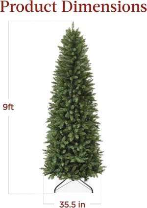 - HIGH-QUALITY MATERIALS: Crafted with durable metal hinges and flame-retardant PVC branches that stand tall with the help of a sturdy metal base, so your tree is ready to look its best for the season ahead!; OVERALL DIMENSIONS: 32.5″(Dia) x 90″(H)