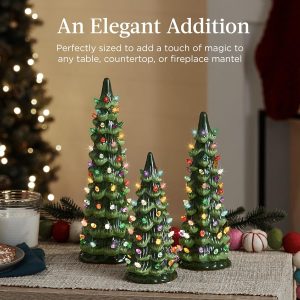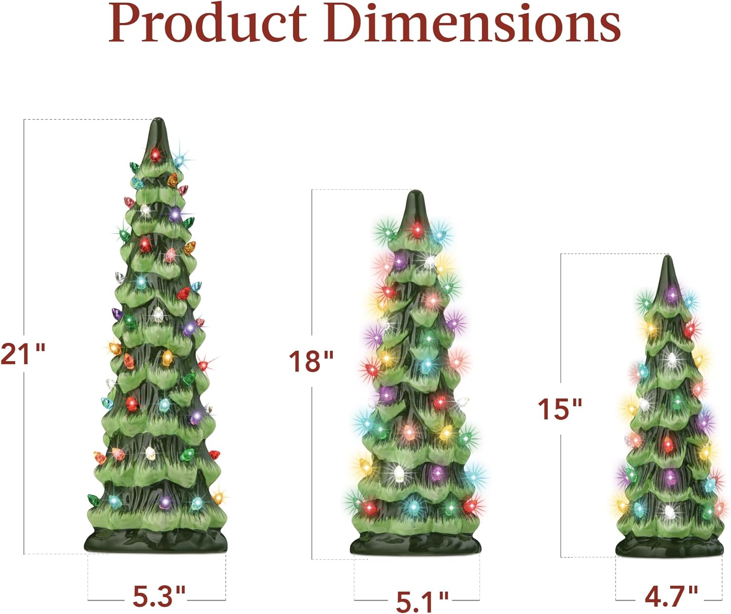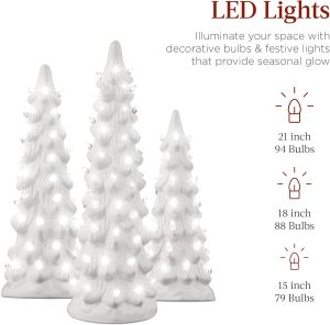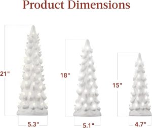 - EXPAND YOUR COLLECTION: Build your own holiday forest as you collect our festive and highly giftable ceramic trees to fill your home or office with seasonal cheer; 21IN TREE DIMENSIONS: 5.3″(Dia) x 21″(H); 18IN TREE DIMENSIONS: 5.1″(Dia) x 18″(H); 15IN TREE DIMENSIONS: 4.7″(Dia) x 15″(H)