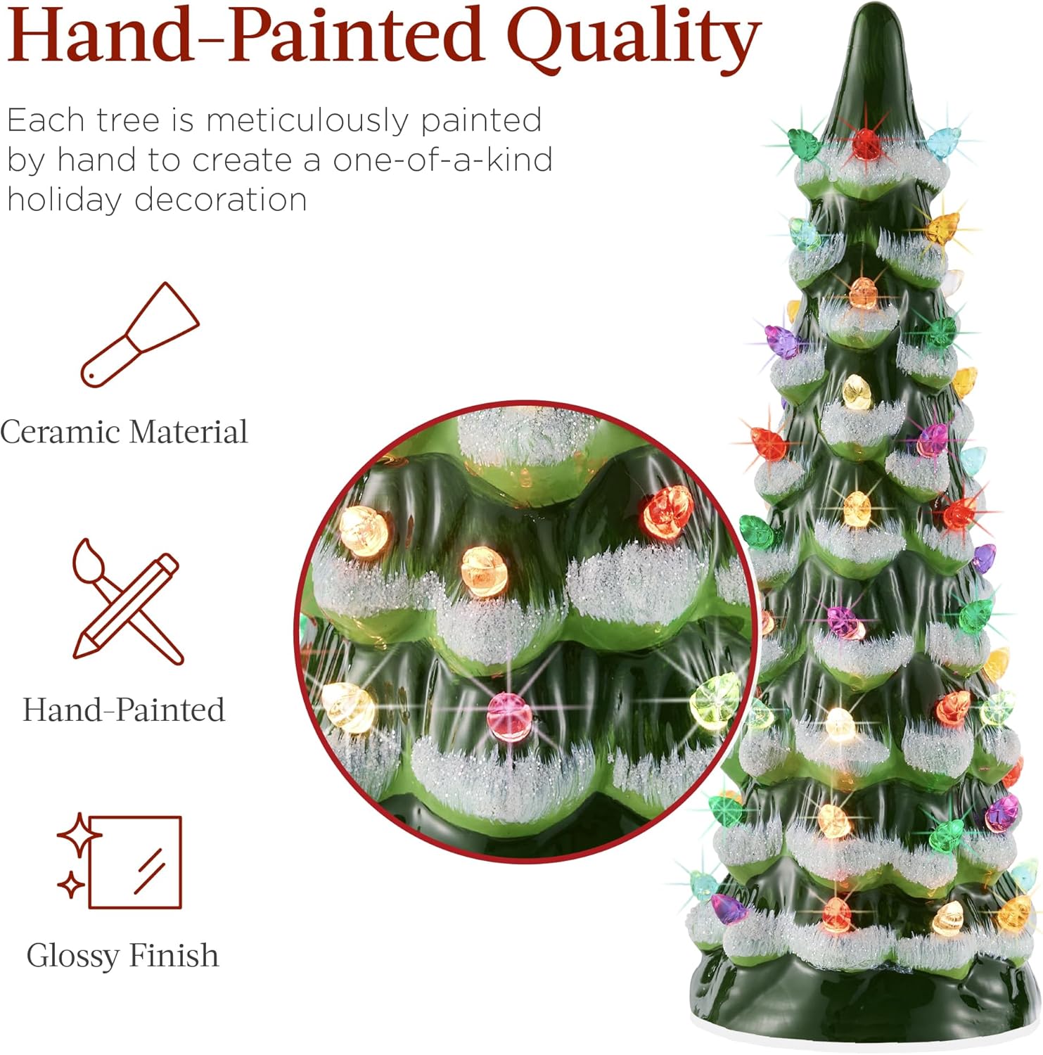 - HAND-PAINTED FINISH: This ceramic Christmas tree set is meticulously crafted, featuring hand-painted colors and glossy finishes to create truly one-of-a-kind decor
