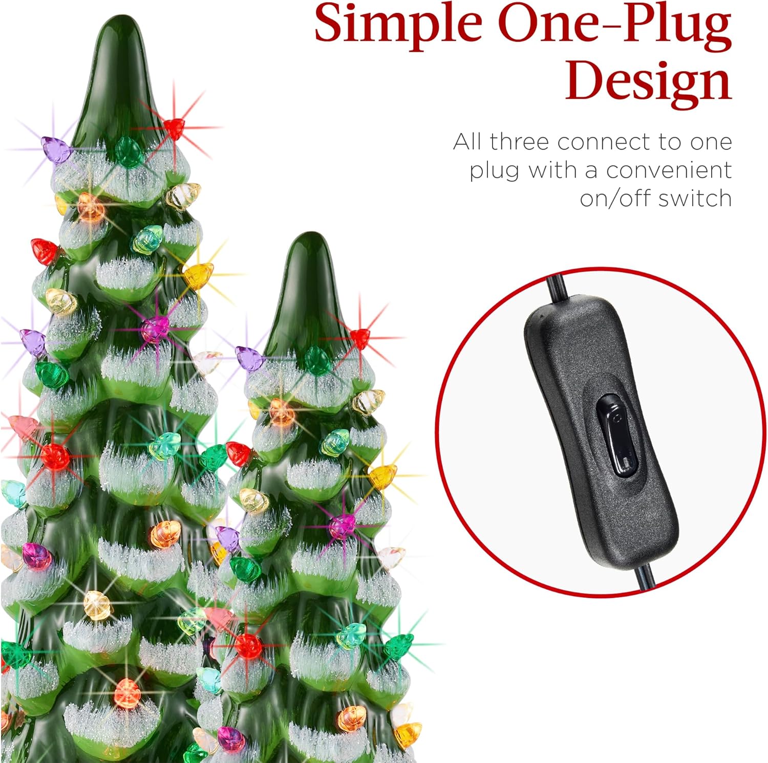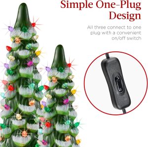 - SIMPLE ONE-PLUG DESIGN: All three trees connect to one plug with a convenient on/off switch, making setup quick and effortless
