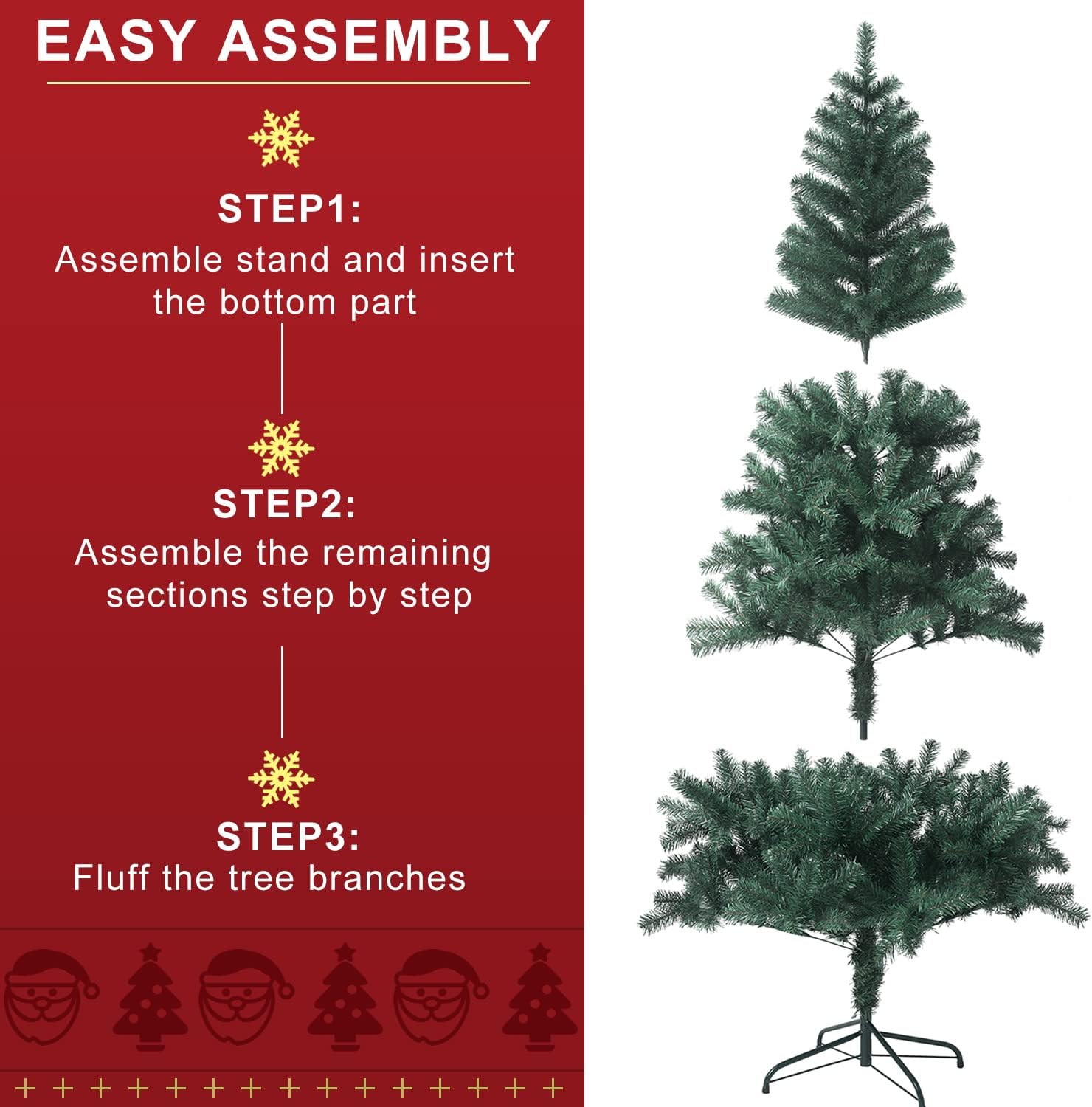 - Easy to Assemble: Each Christmas tree comes with detailed assembly instructions,which you can follow with to set up the tree with the bolts attached. Easy to assemble, lightweight, nice and fluffy. Please give it more patience to spread out all branches, then you will get a full and dense Christmas tree.
