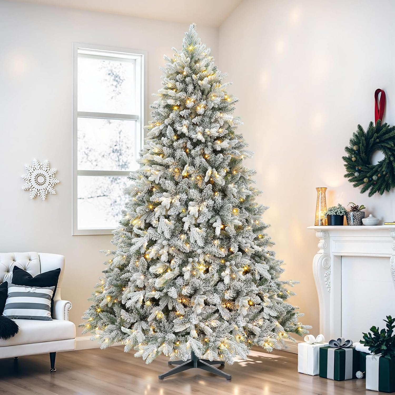 - Realistic Snow Flocked Christmas Tree: The Christmas tree features lush green branches covered in white flocking, creating a stunning snowy white and green appearance that adds a magical winter atmosphere to your holiday decor. Lifelike PVC needles and a natural layered branch design, this tree offers an authentic evergreen appearance without the maintenance.
