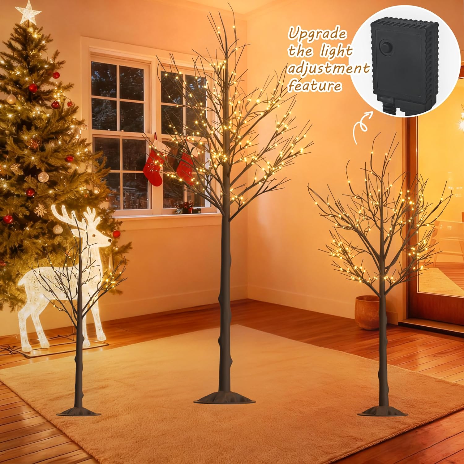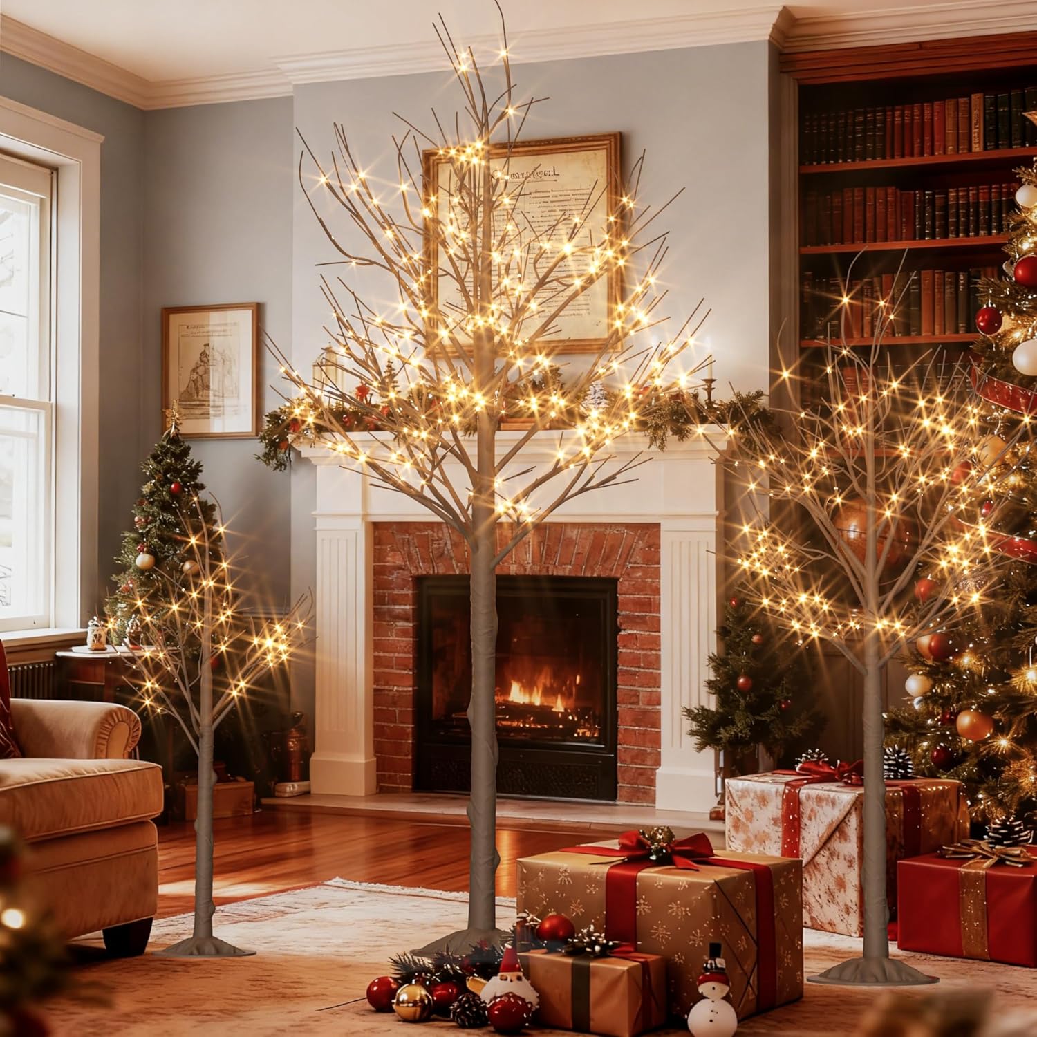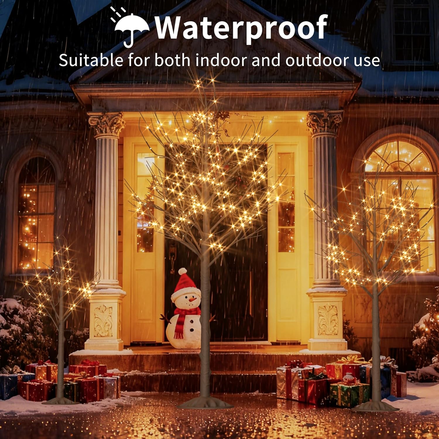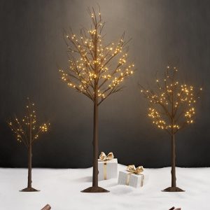 - Christmas Tree With Led Lights: This set of 3 outdoor trees includes lighted trees measuring 4, 6, and 8 feet tall. The life like birch tree design, complete with LED lights, adds charm and elegance to your outdoor decor, making it the perfect lighted Christmas tree display