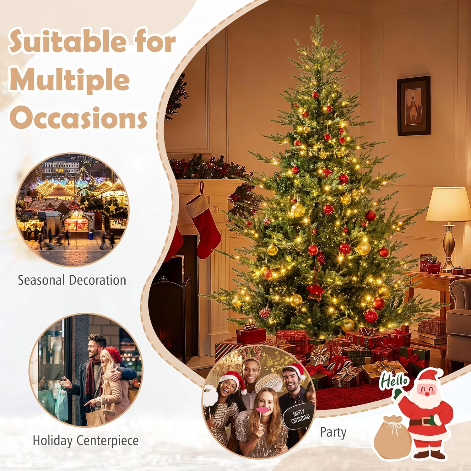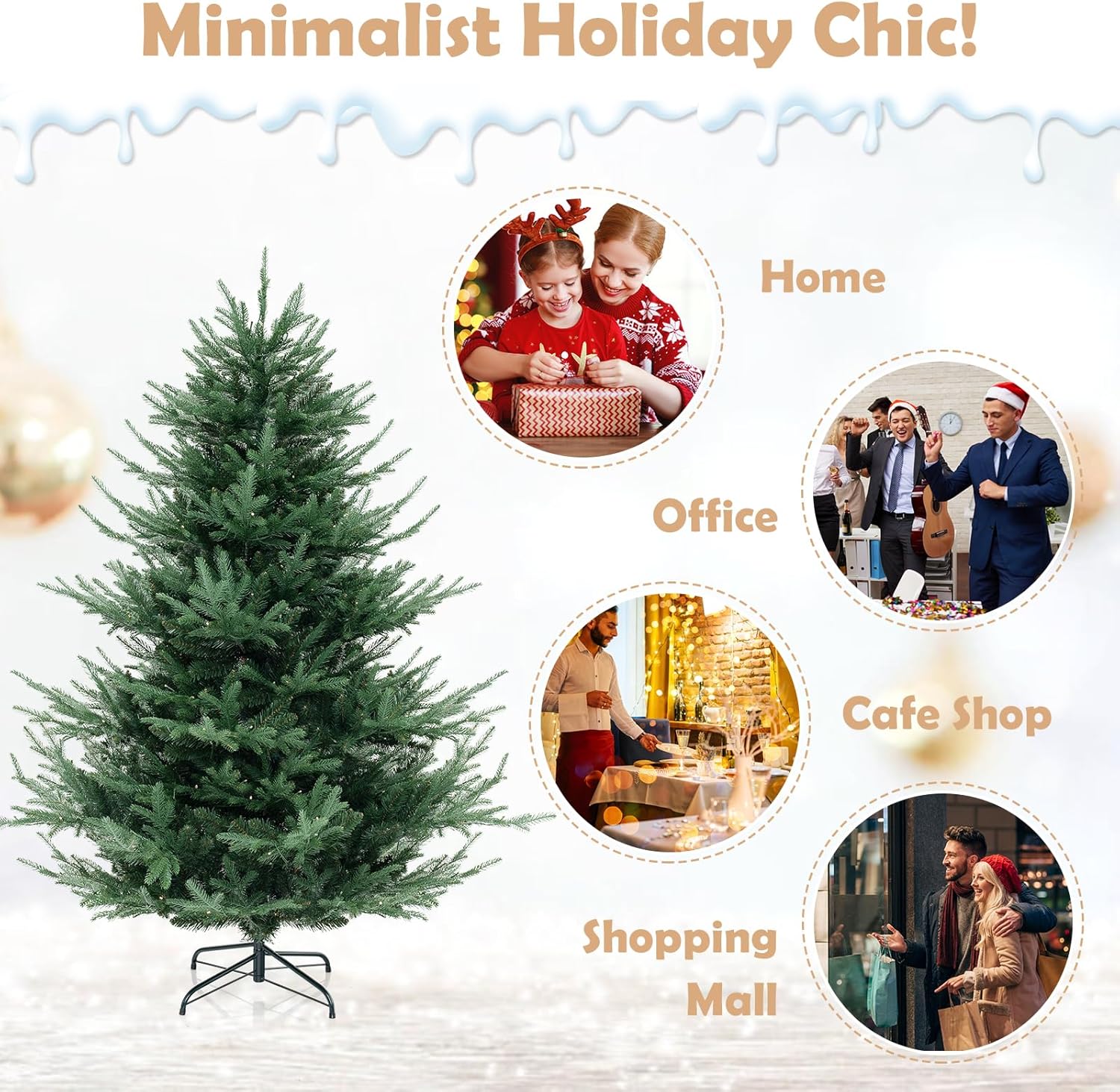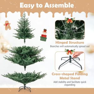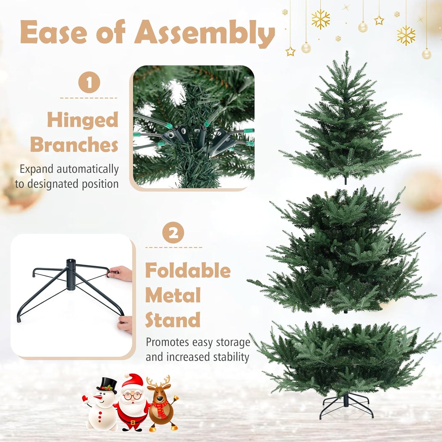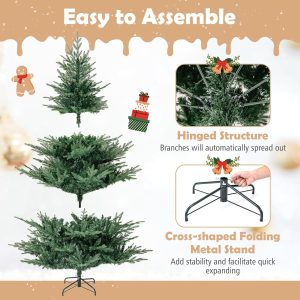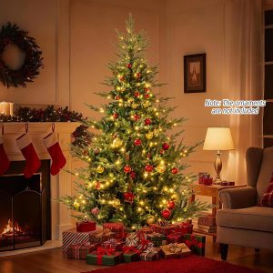 - Selected Materials & Stable Base: Crafted from PVC and PE materials with flame-retardant, non-odor, and non-allergic properties, the hinged Christmas tree ensures worry-free experience. Moreover, a sturdy crossed metal base with anti-slip pads is included to provide excellent stability.