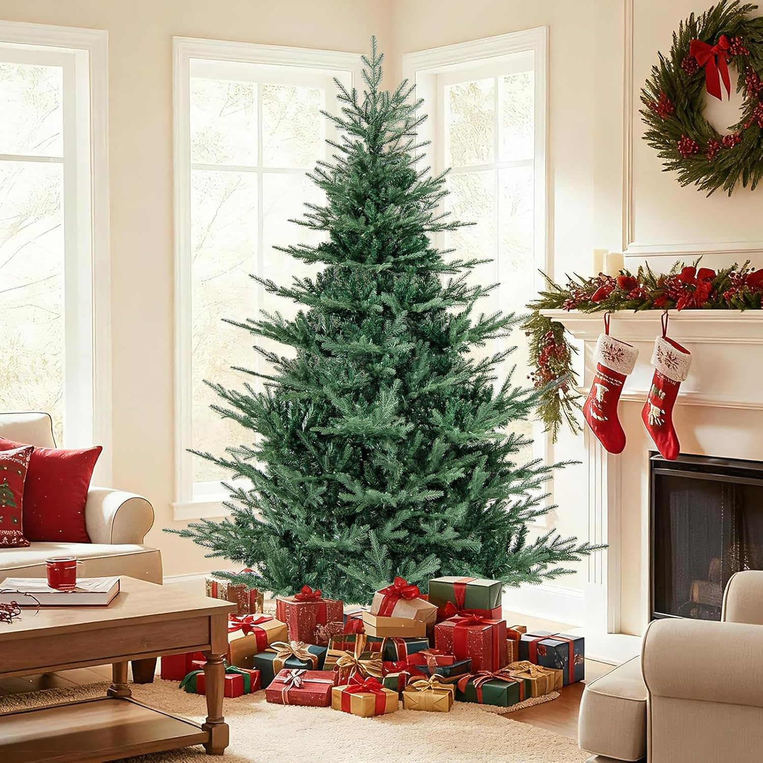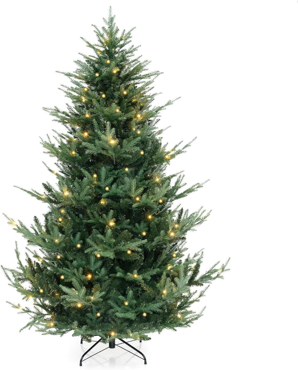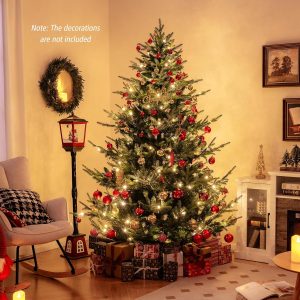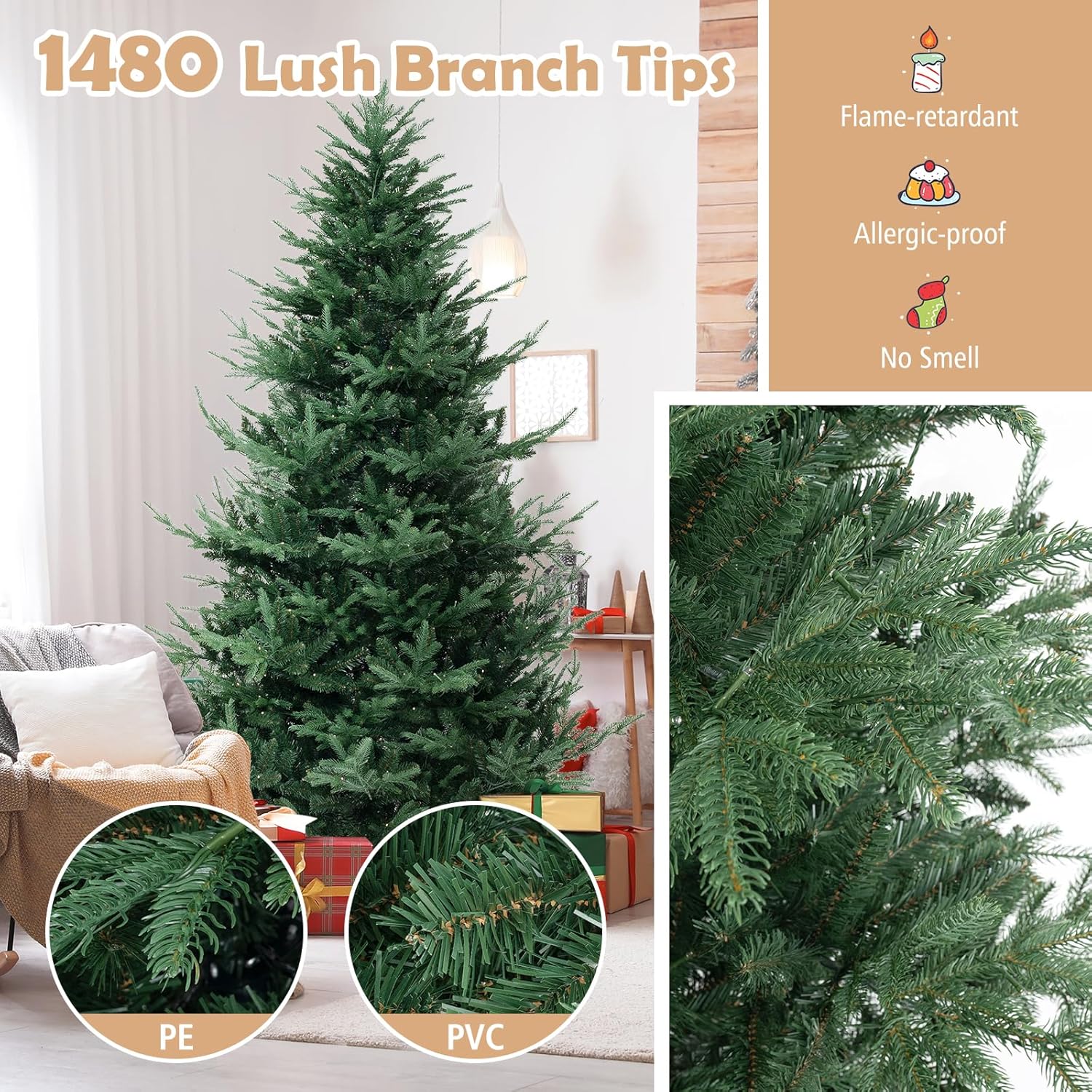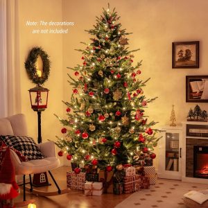 - Lush & Lifelike Appearance: The 8 ft artificial Christmas tree boasts 1480 lush branch tips, creating a vivid appearance that will captivate all who gaze upon it. More importantly, the 2 types of leaves, including soft PE leaves and verdant PVC leaves, will ensure a realistic and natural look.