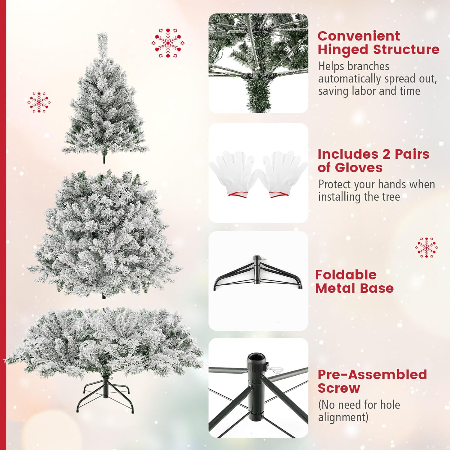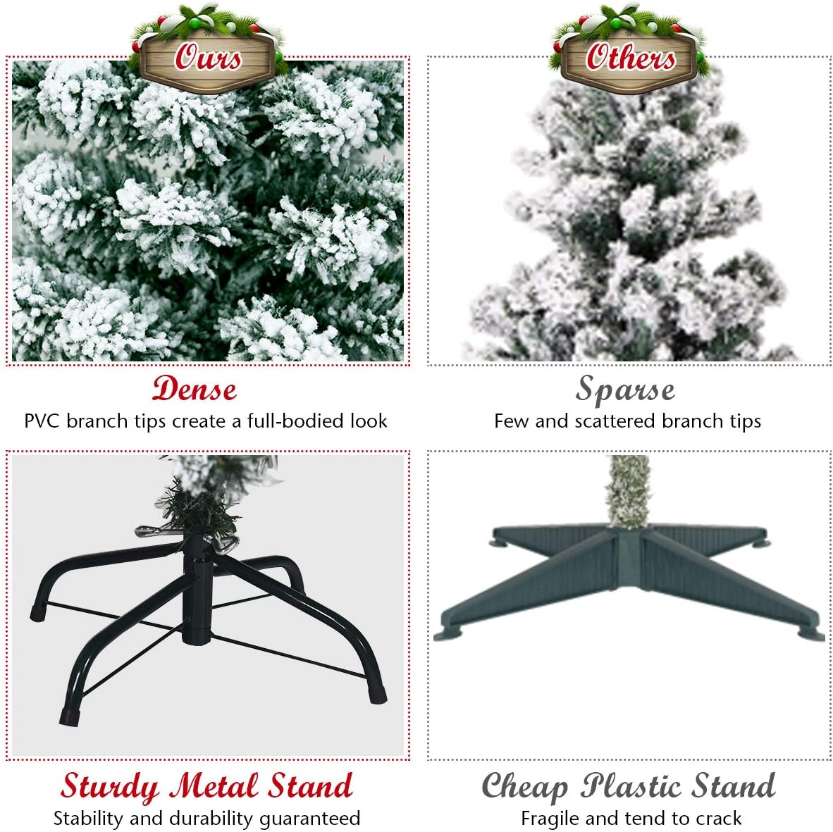 - 🎄Sturdy Metal Stand: This snow flocked Xmas tree features an X-shaped iron stand that provides strong support. Compared with other cheap plastic bases, our metal stand is more stable and breakage-resistant, keeping it standing upright for years to come. Besides, the metal stand is foldable to facilitate storage.
