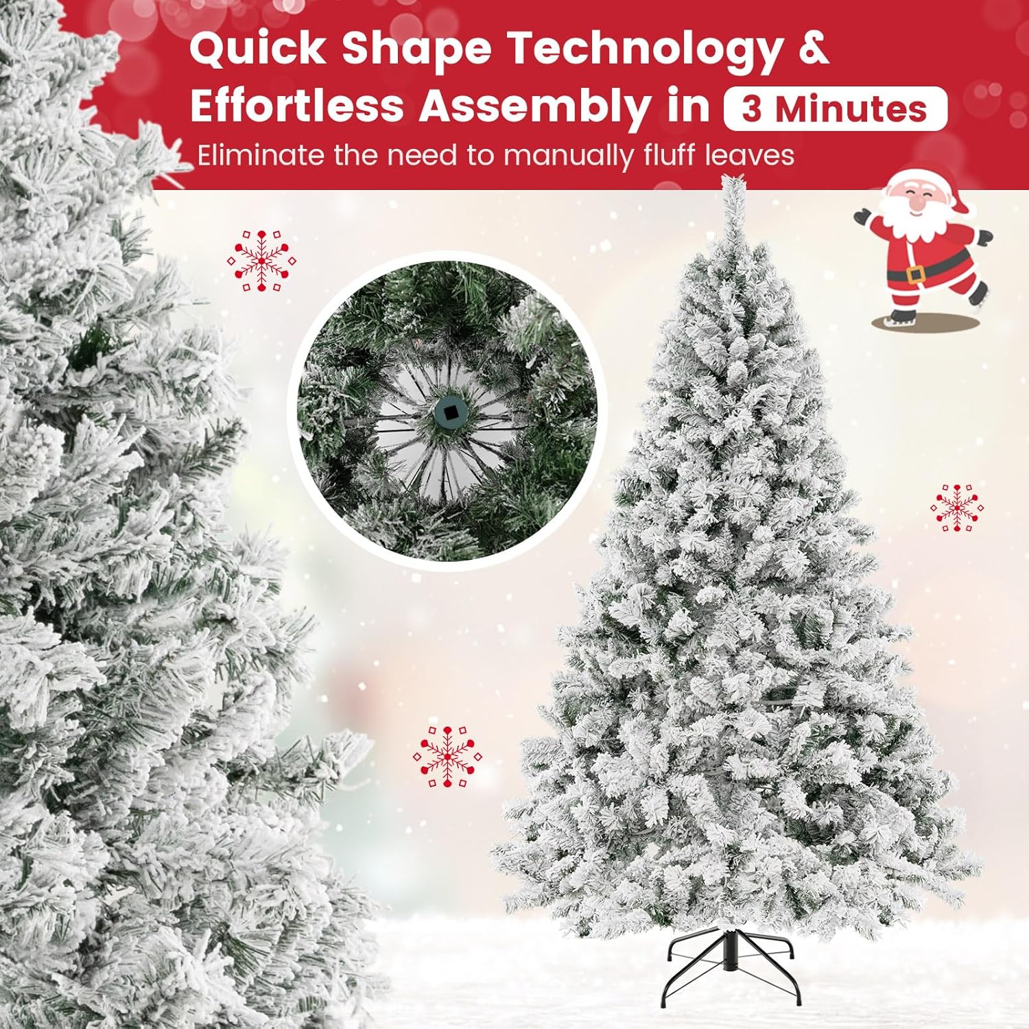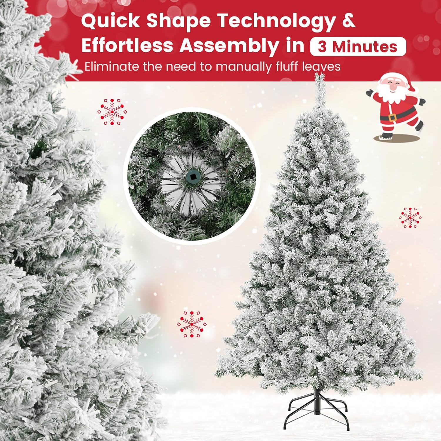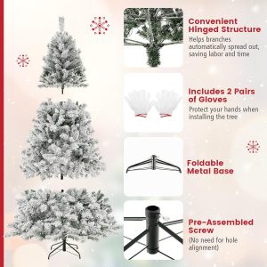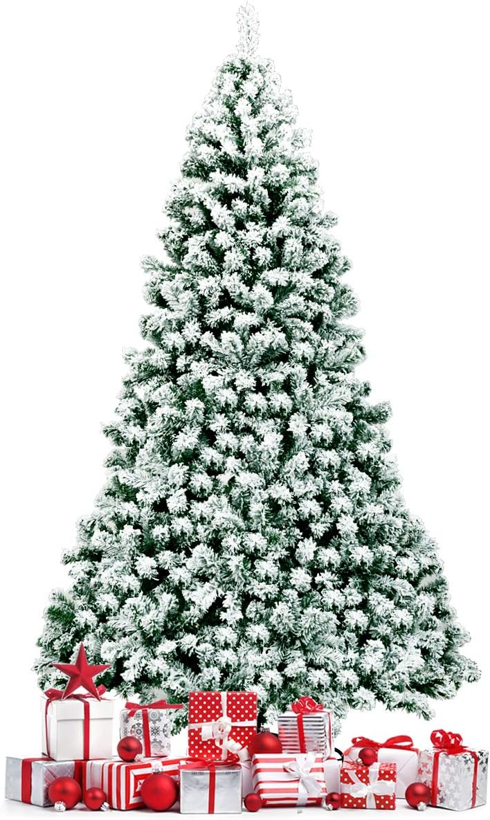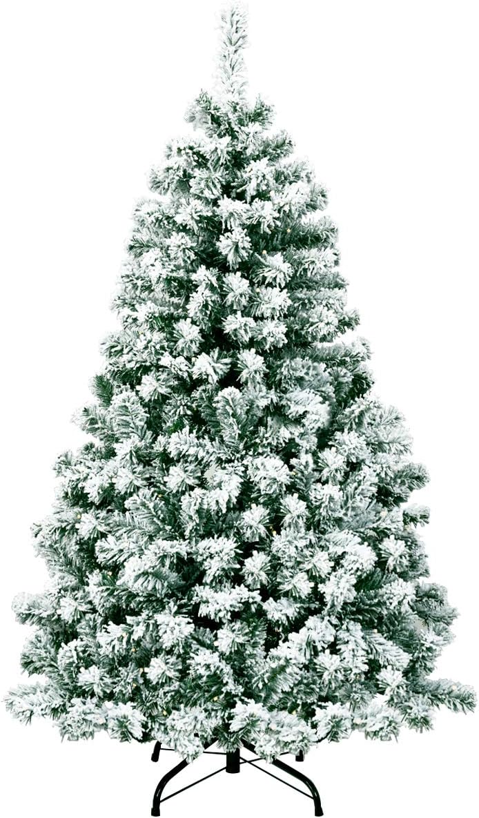 - 🎄Eye-Catching Addition for Any Place: Snow flocked leaves create a unique wintry feel, making this 7.5FT Christmas tree an eye-catching addition for any place. You can either put it at home to strengthen Christmas atmosphere and celebrate Christmas with family members pleasantly, or put it in shops to attract the attention of customers.
