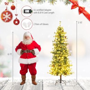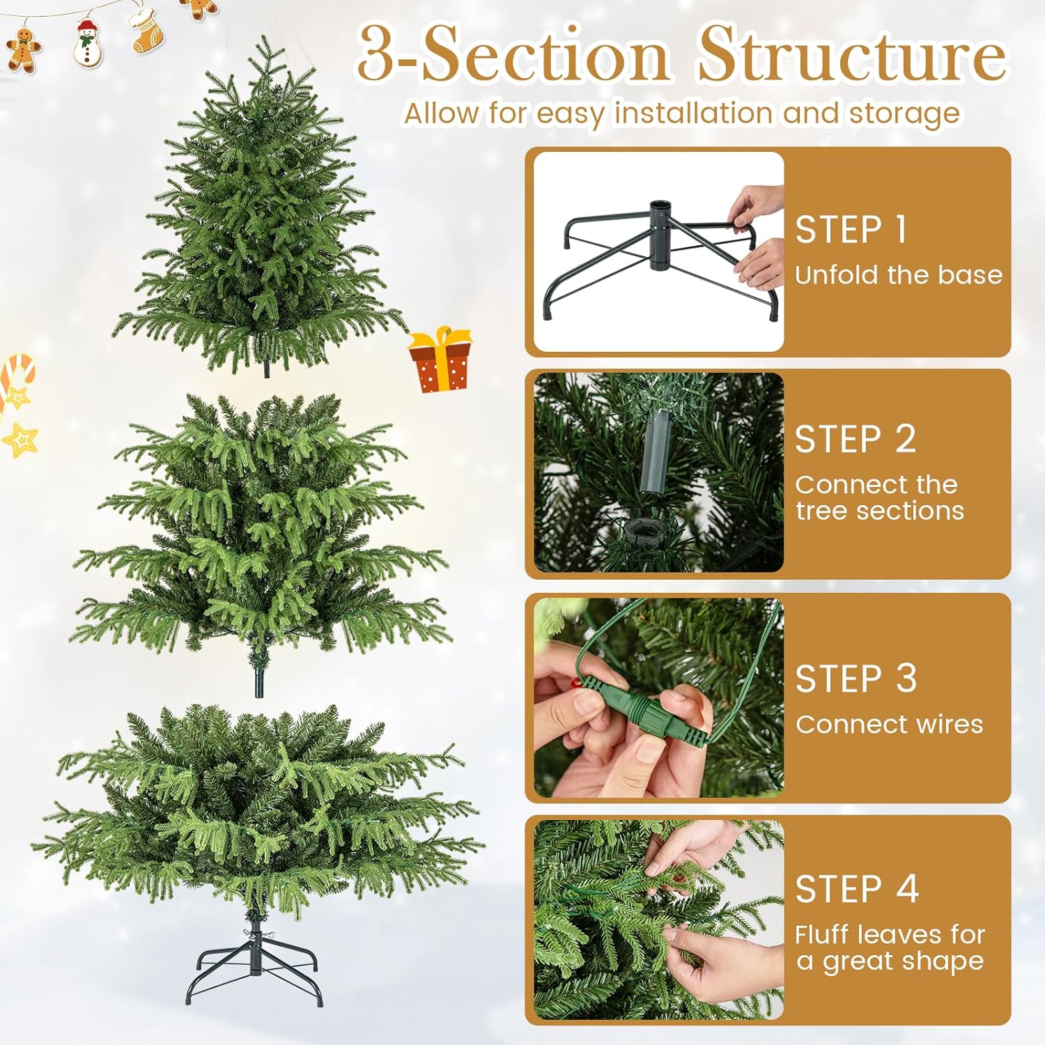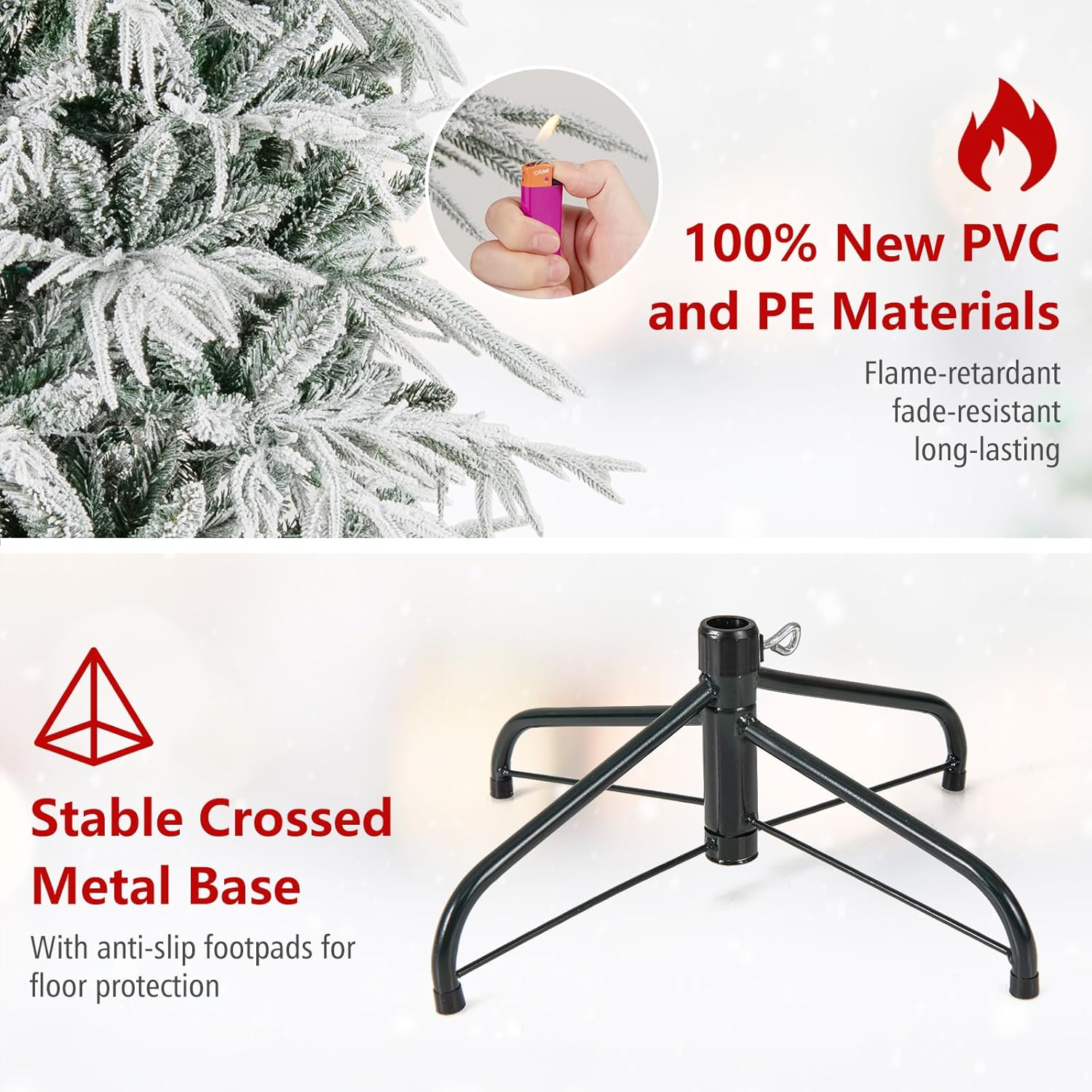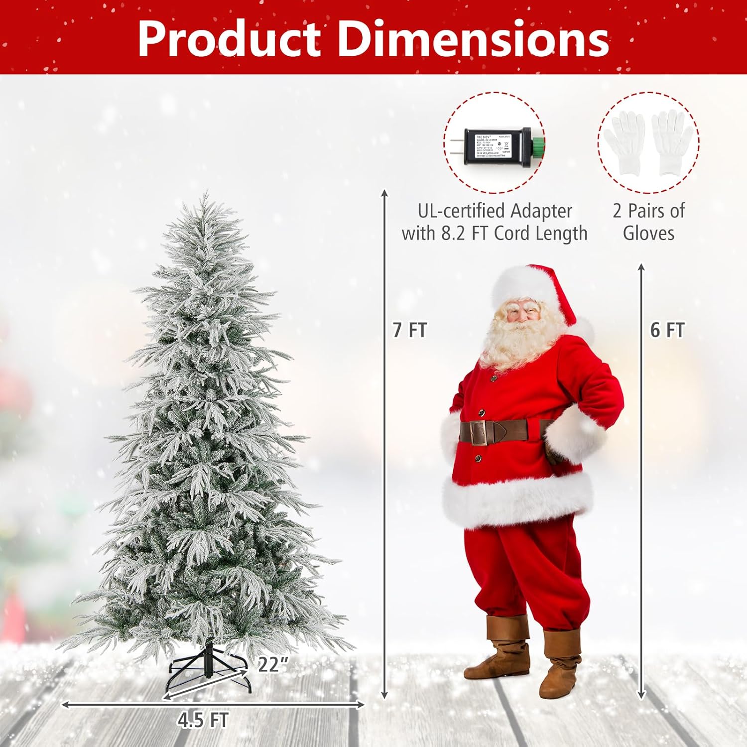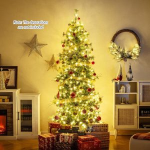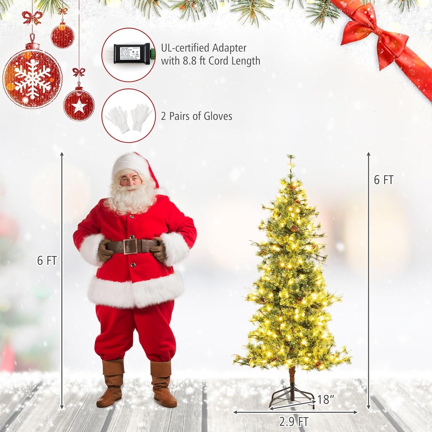 Goplus 8 FT Pre-Lit Artificial Christmas Tree, Hinged Full Xmas Tree with 1470 PVC & Soft TPE Branch Tips, 470 Warm White LED Lights, Foldable Metal Stand, Home Office Holiday Decoration