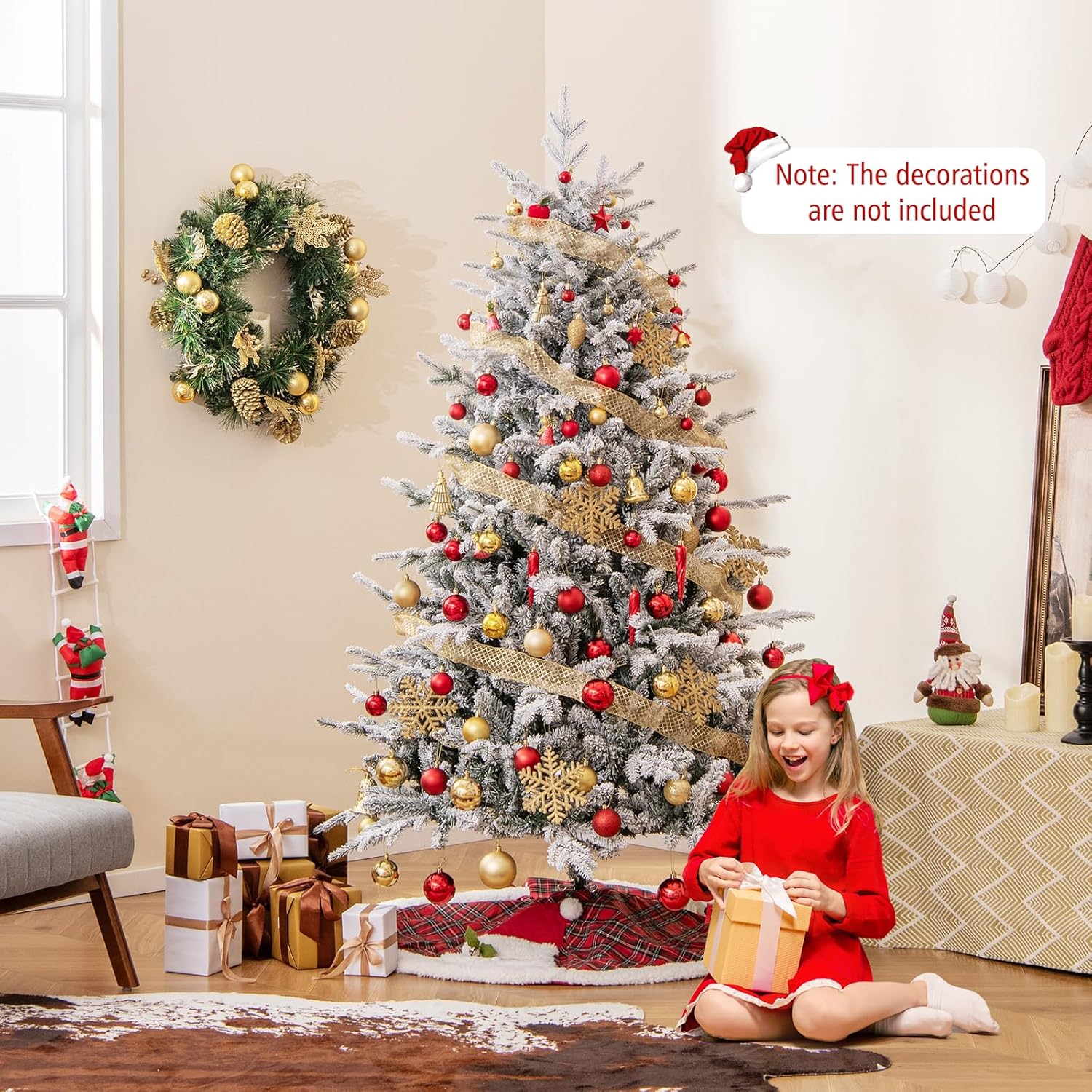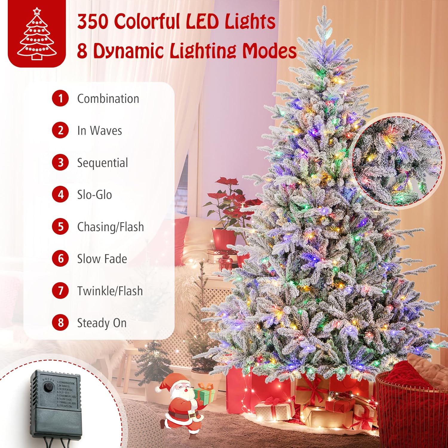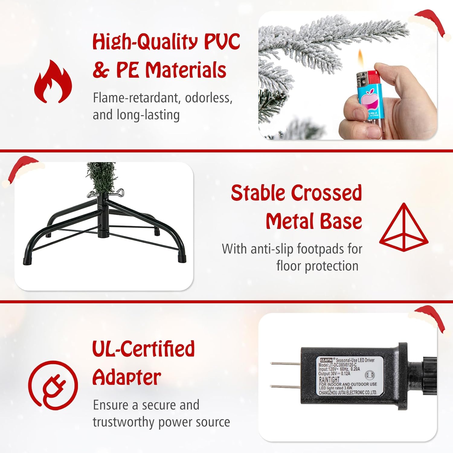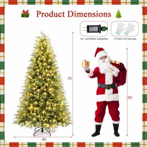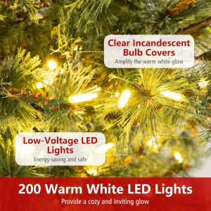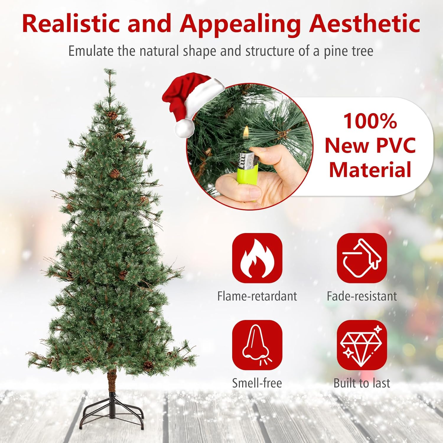 Goplus 8 FT Pre-Lit Artificial Christmas Tree, Hinged Full Xmas Tree with 1470 PVC & Soft TPE Branch Tips, 470 Warm White LED Lights, Foldable Metal Stand, Home Office Holiday Decoration